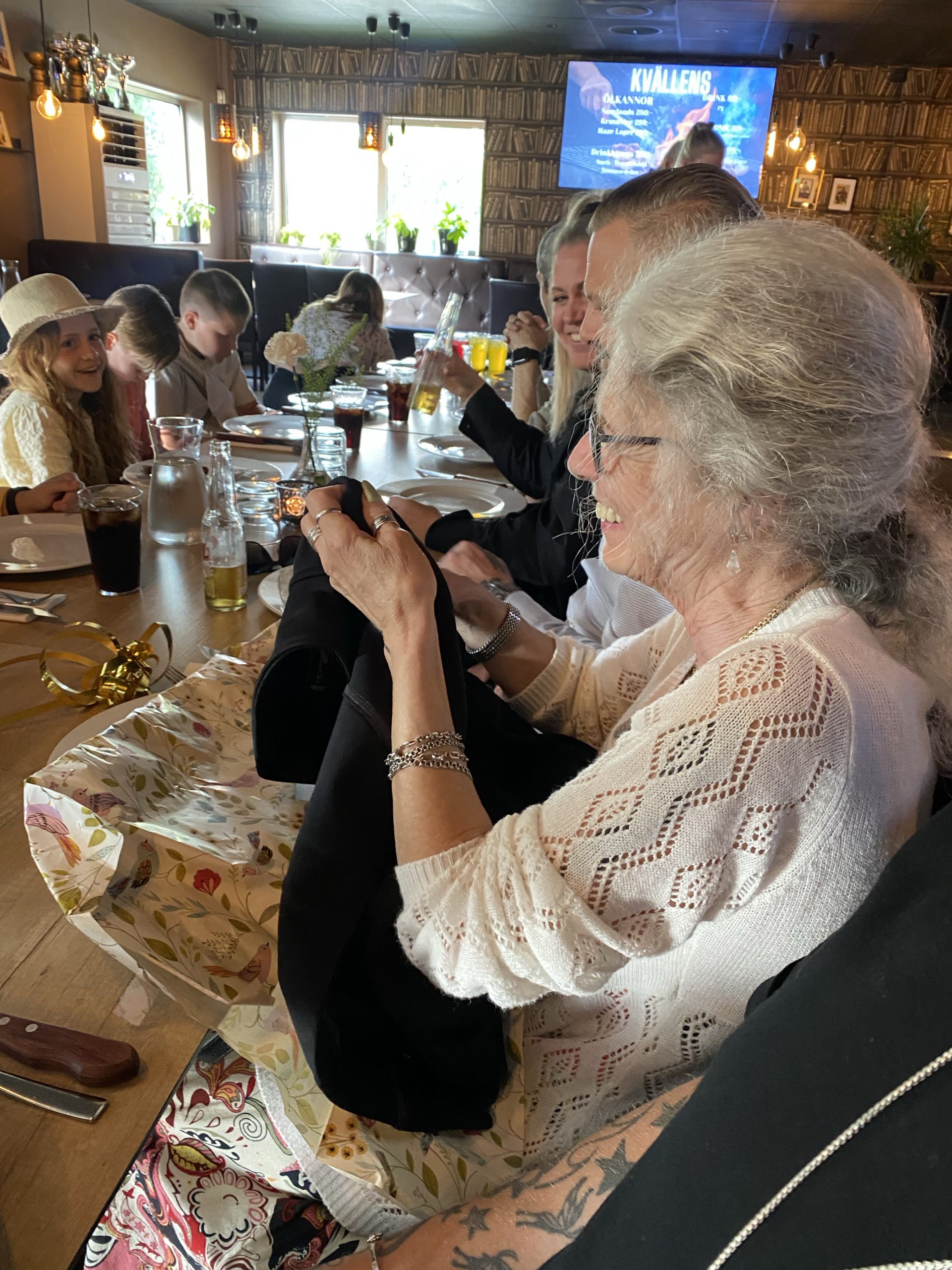 I fredags kväll hade vi bokat bord på ICE, svärmors pension skulle firas. Hon har ju jobbat 5 år längre än vad man behöver för att hon trivts så himla bra på sitt jobb. Men i år är det äntligen dags att sluta! Vi överraskade henne med att sitta där allihop när de kom ned. Hon blev så himla glad! 🥰 Vi köpte ett halsband till henne från Thomas Sabo med tre berlocker. Så fin, synd bara att vi fick fel horoskopstecken på en av berlockerna. 🤣🤣 Hon såg lite förvånad ut när det var en kräfta istället för tvillingar på berlocken. Ska byta den i veckan.