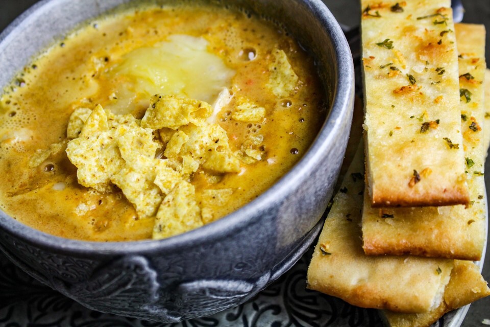 Tacosoppa med kyckling och vitlöks-flatbread