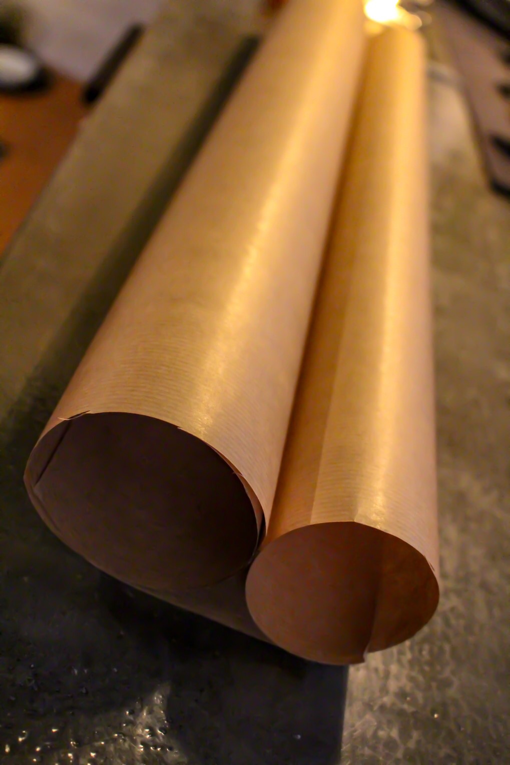 Här har vi 2 som jag vikt av tapetprover som vi hade hemma. Dessa har jag klippt lite hål i också så ljuset sipprar igenom.