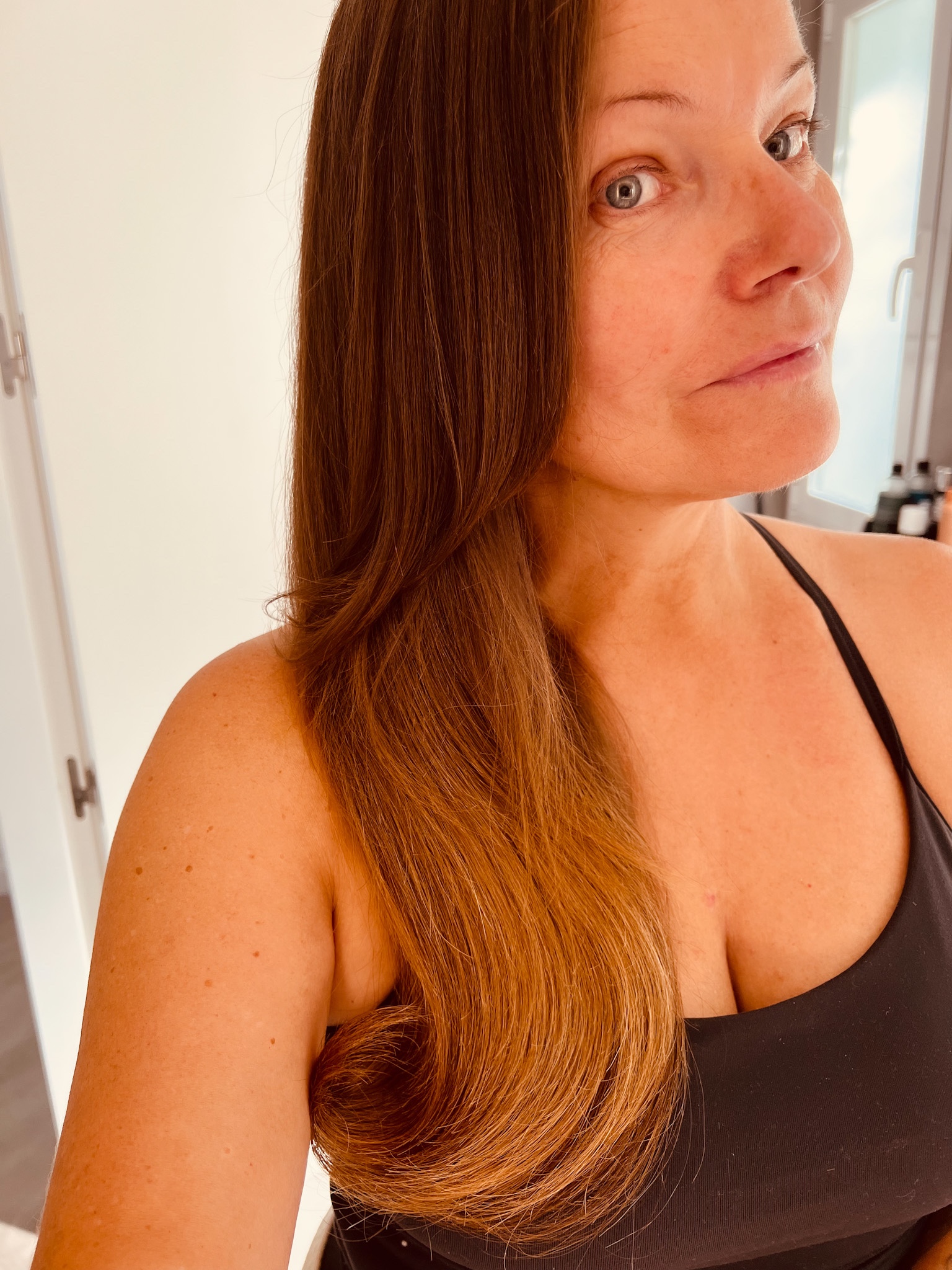 Åh! Nytvättat hår helt utan frizz, kommer också hålla sig fräscht länge. Perfekt nu när man inte är riktigt stark och duschar är ett helt projekt, säger det igen…. Tur jag har Tony. Hur hade man löst allt som ensamstående? Beundrar verkligen ensamstående människor som roddar allt själva, har varit för själv en gång i tiden. Har på mig mitt ryggskydd för sig som undrar. ☺️