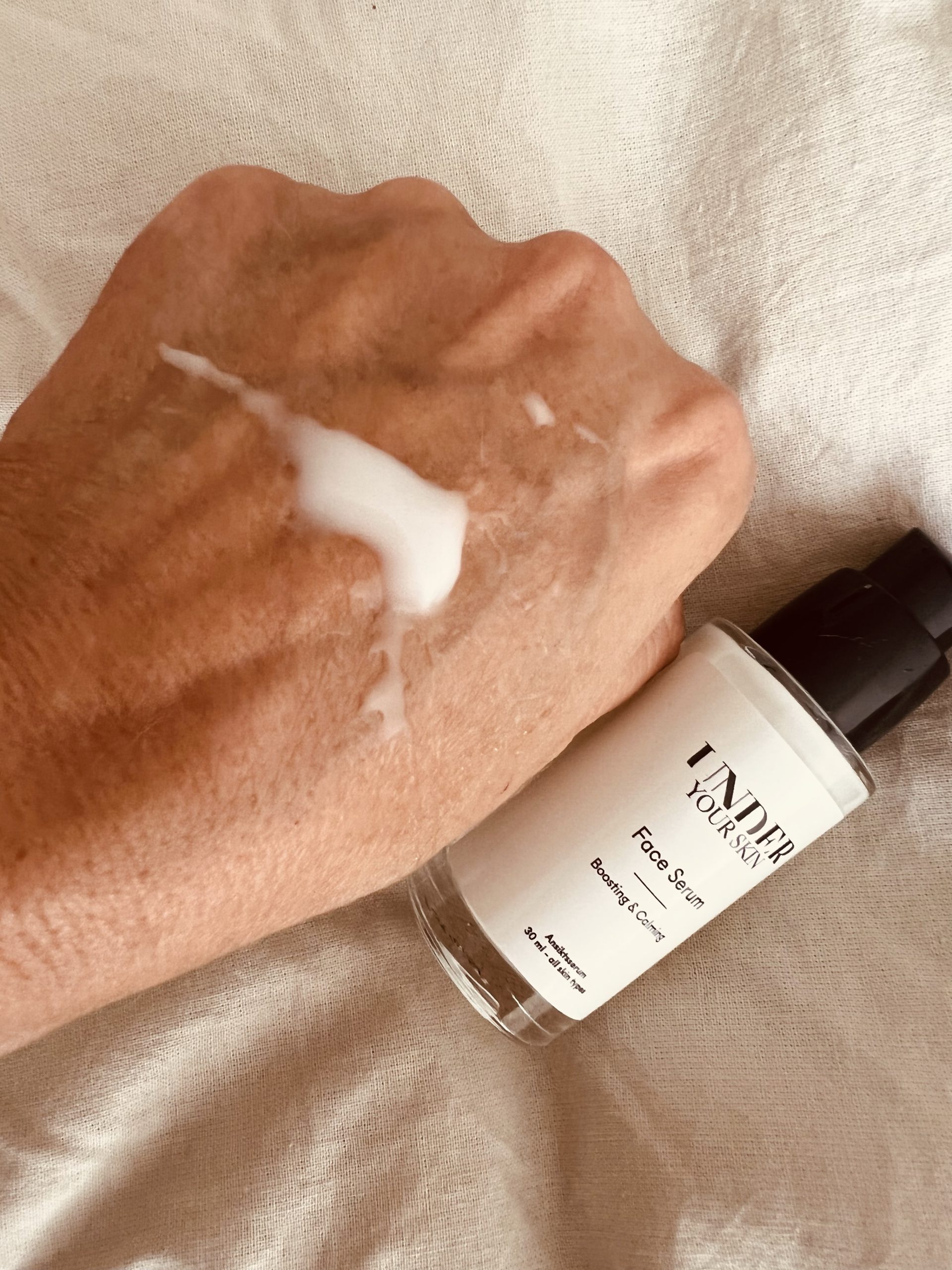 Nu till en nyhet från Under Your Skin! Detox kit (<klickbar länk) för ansiktet. Detta paket beställdes alldeles perfekt, för när det bara var slut kvar i burken så damp dom ned här i Spanien. Ansiktskräm och serum, heeeeelt fritt från tveksamma kemikalier gjord på 100% naturliga ingredienser. Vet ni hur länge jag väntat på att hitta produkter som funkar på min känsliga hud som är helt rena?! Jag ska erkänna att jag var nervös första gången jag testade! Skulle jag få kli? Skulle jag få utslag? Skulle jag bli torr som fnöske?