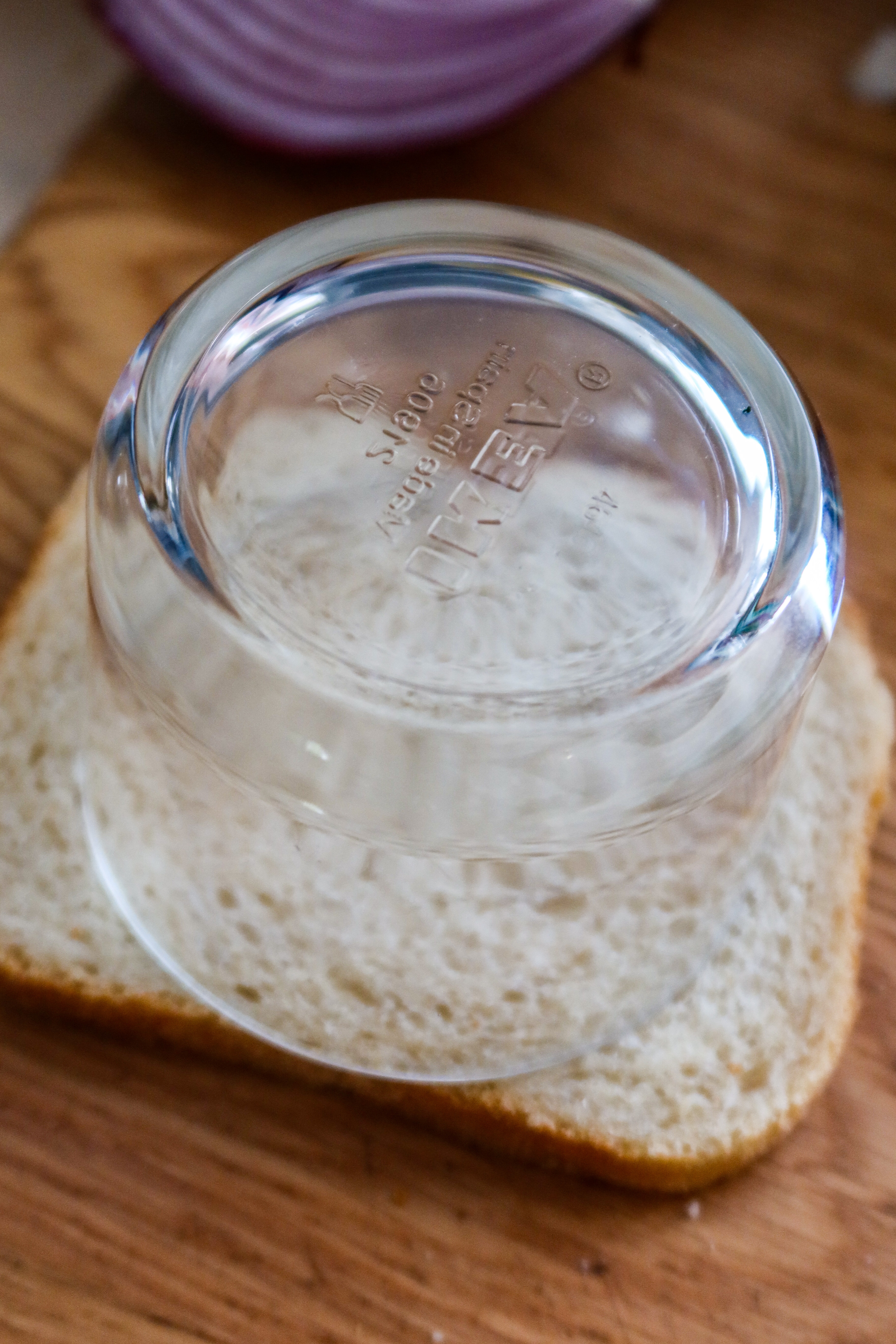 1) Ta formbröden och pressa ur rundlar med ett glas. 6 stycken rundlar då det går åt 3 till varje.