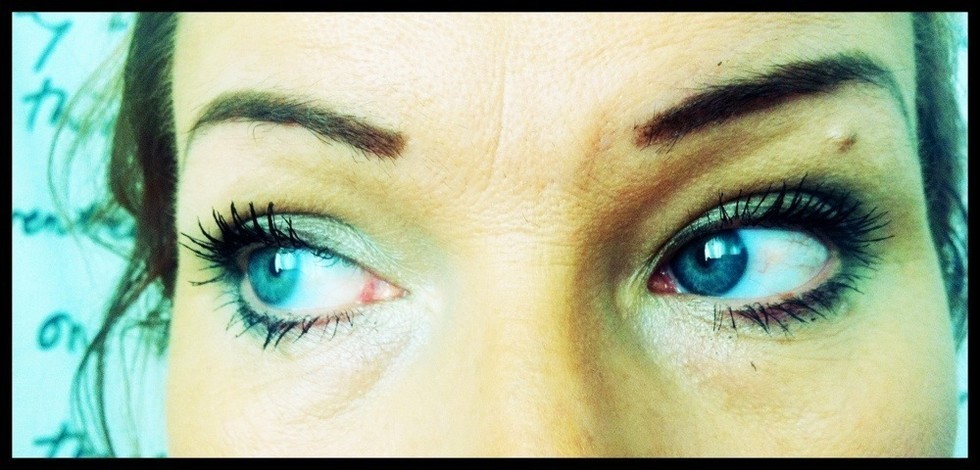 Jag har mina linser i idag då brillorna pajat. Jag använder sällan linser på vardagar. Jag slipar, sitter mycket vid datan osv så att ha linser i då är inte bra. Som ni ser på bilderna börjar jag redan bli röd fast jag bara haft dom nån timme.