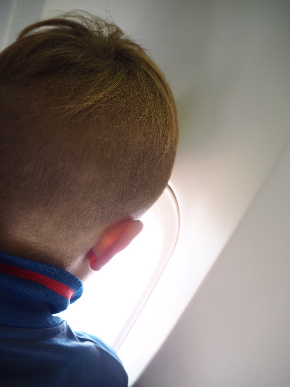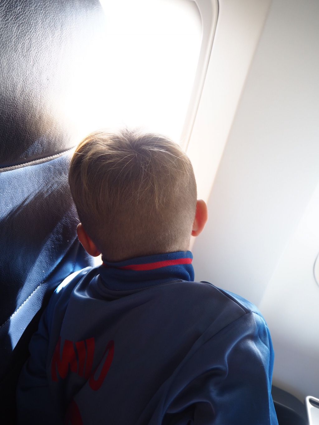 Här var vi på väg in mot planet. Här började jag känna att allt kändes lite annorlunda. Här står jag i regel och hyperventilerar eller andas inte alls! Har oftast en riktigt obehaglig panikkänsla i kroppen. Men den här gången kände jag ett märkligt lugn i kroppen som jag aldrig tidigare känt i dessa sammanhang. Sa inte ens att jag var rädd till flygvärdinnan som välkomnade oss, det för jag alltid annars. Vi bokade platser med extra benutrymme för att jag skulle ha lite space. Det kan jag VERKLIGEN rekommendera till dig som är rädd! Det gav mig luft och frihet på något sätt. Kändes inte alls trångt och panikartat liksom. Jag hade dessutom Milo bredvid mig och Tony bakom. Av någon konstig anledning var Milo rädd vid starten. Dock ska jag säga att jag ALDRIG pratar om min flygrädsla inför honom JUST för att jag absolut inte vill överföra den på honom. ”Kommer vi krascha?” frågade han plötsligt när vi satte på oss bältena. Jag förklarade att vi inte skulle det. Berättade om all statistik som jag själv suttit och präntat in i skallen innan resan. Vet ni hur bisarr känsla det var? Som att jag var en annan person som satt där och lugnade mitt barn – fast typ mig själv också, utan att Milo visste det. På något sätt satt jag och väntade på att jag skulle flippa ur. Bli för rädd och inte orka med Milos rädsla mitt i allt. Men det hände inte. Kände mig som en trygg maskin på något sätt. Som i en krissituation måste hålla ihop sig själv för att lugna personen som är rädd. Helt jäkla bisarrt! Självklart var jag rädd och spänd, men inte på samma sätt….. Milo klarade allt toppen. Tyckte starten var häftig. Jag spände fingrarna lite hårdare i handtagen men var faktiskt inte sådär hysteriskt rädd som sagt. Djupandades lite och kände mig mer spänd och lite tagen, typ så. Sedan pratade jag med Milo. Sa saker som ”Visst är det häftigt när det går så fort?!” ”Nu ska vi upp till solen”?! Satt också och förklarade de konstiga luftgroparna och varför det blir så. Ja men jag säger ju, heeeelt bisarrt! Milo tyckte om att flyga. Var inte alls rädd sen när vi kom upp på höjd. Dessutom köpte vi hörlurar med tillgång till film och spel. Bra som tusan!