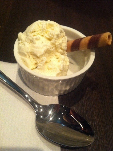 Väl framme så körde dom uppvärmning o vi gick o käka. Det fick väl sådär. Milo var inte på restauranghumör kan man säga.