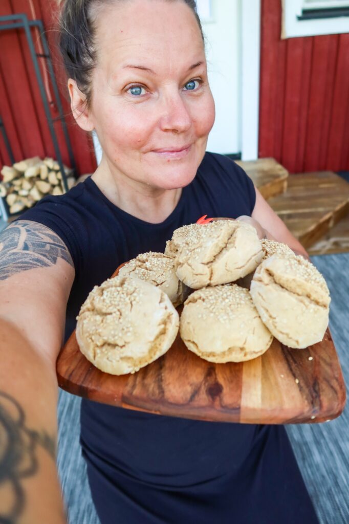 Vi åt dem på altanen. Nybakt bröd, kaffe i handen och sommarens första tystnad. Tony tyckte dom var sååååå goda, kan säga att den där påsen med frallorna försvann i ett nafs. 😂 Och så mysigt vi hade när vi satt där. Tystnaden ute på landet är något helt annat. Det är som att hjärnan slappnar av totalt, älskar älskar det.
