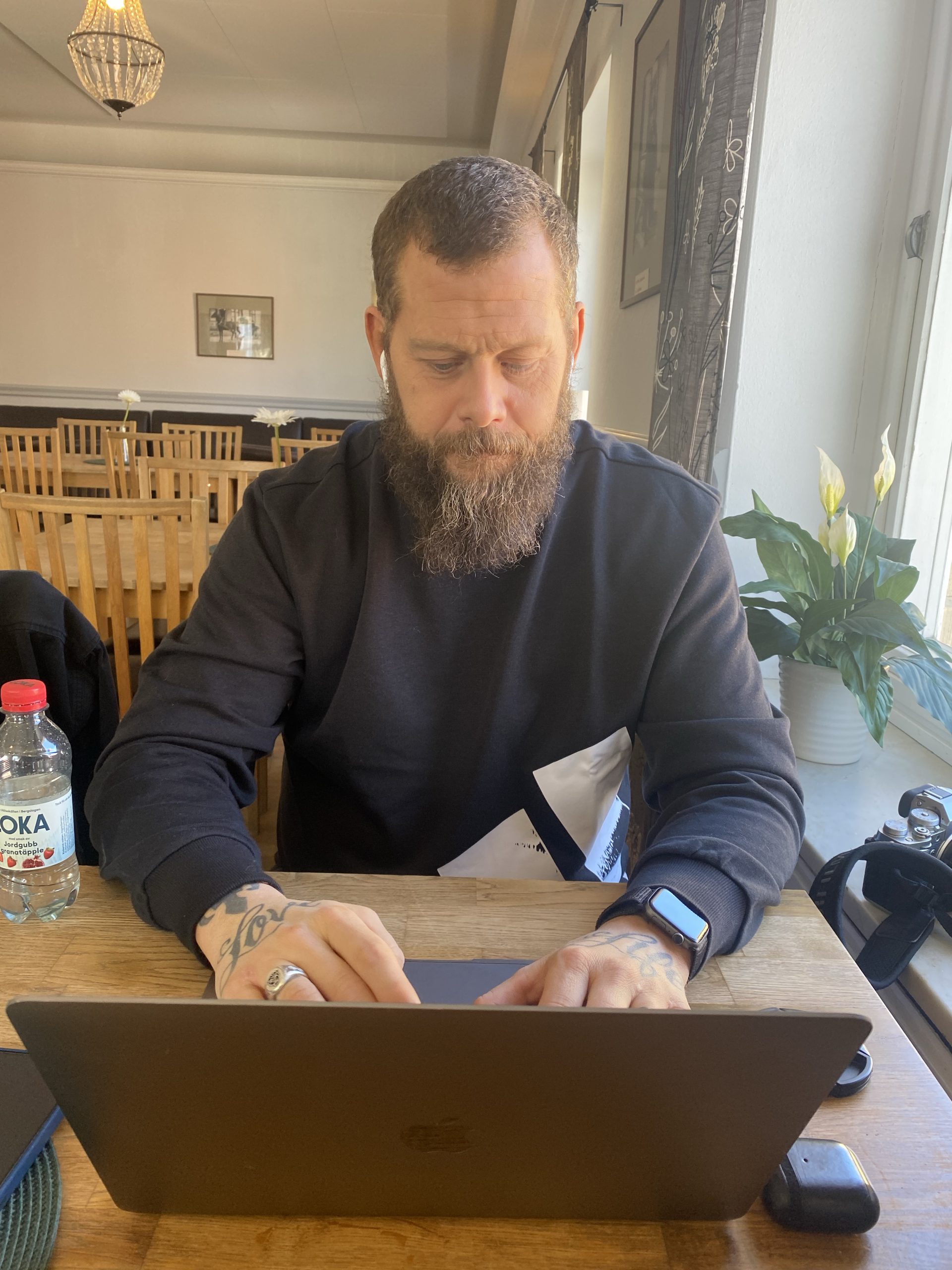 Mötte upp mannen min som satt och jobbade på ett café. Han har mycket och göra precis som jag. Vissa dagar pratar vi knappt med varandra även om vi brukar jobba i närheten av varandra.