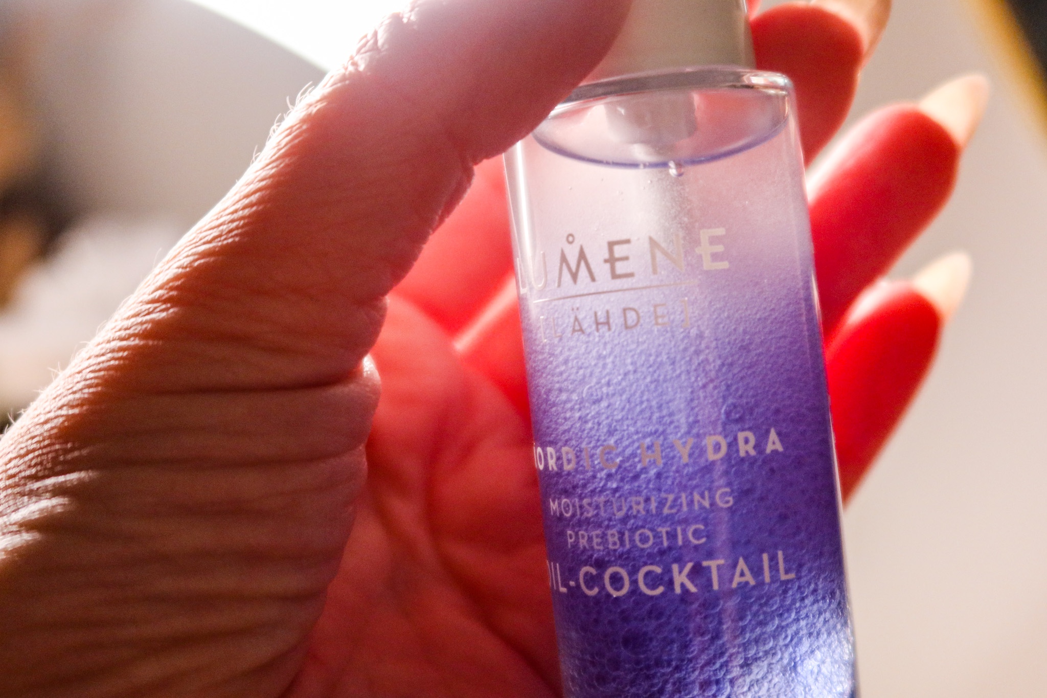 Moisturizing prebiotic oil-cocktail (<klickbar länk). Efteråt så tvättar jag bort masken. Sedan skakar jag om den här flaskan och så ger jag huden ytterligare en cocktail av en återfuktande olja, prebiotisk (inflammationshämmande) xylitol som bygger upp hudens fuktbarriär på en ny nivå. Den var så härligt att ha på efteråt. Jag har ju extremt känslig hud i ansiktet, dessa passade även mig som känslig. Tips tips! Så skön och härlig känsla efteråt!