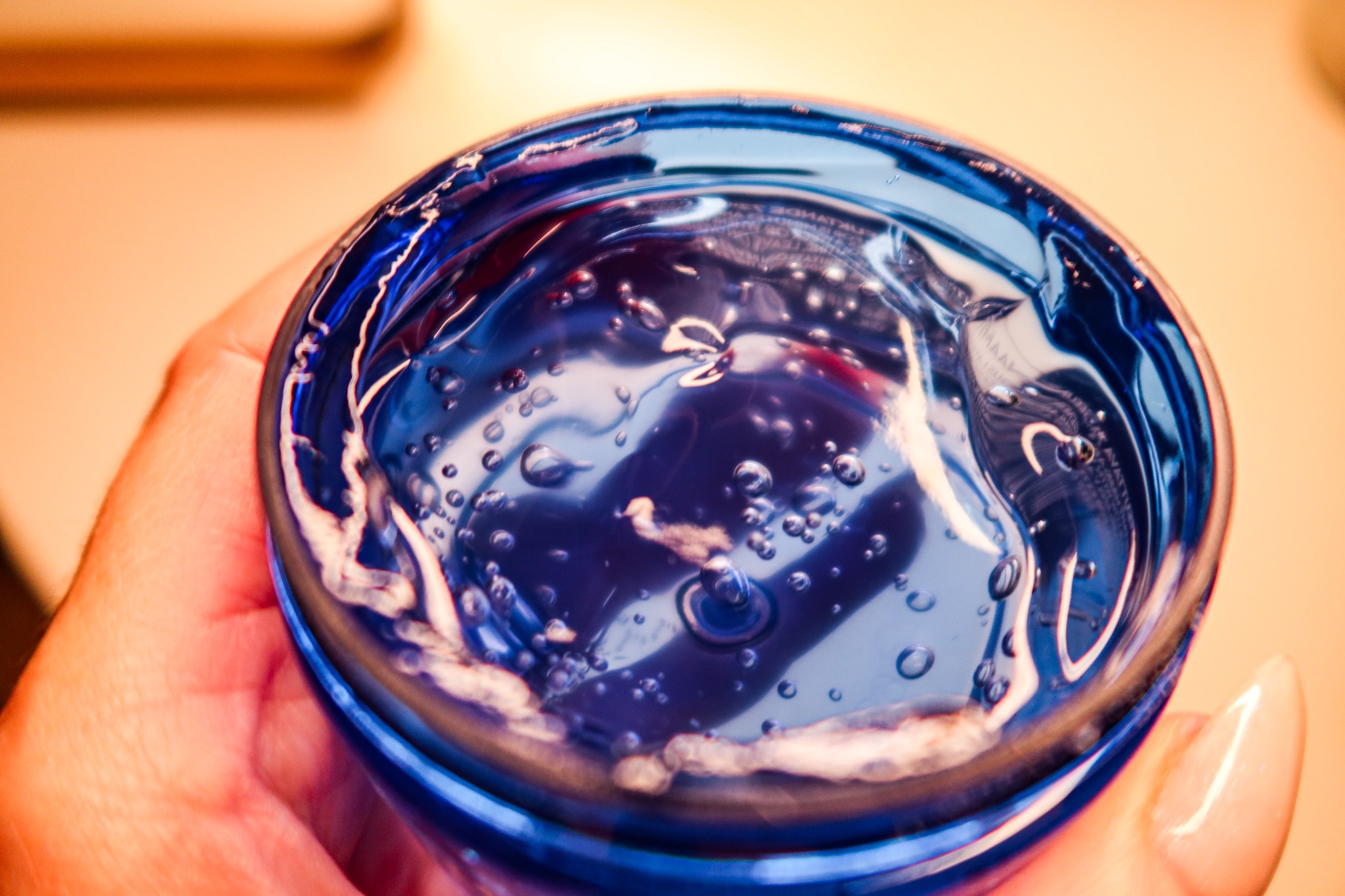 Ett hett tips till dig som tycker att du ser ovanligt rynkig ut, känns glåmig och trött i ansiktet, kör den här! Alltså jag kände mig 10 år yngre efteråt, haha… Det var som om huden liksom fick dricka och äta, och sova 8 timmar. Ser ni konsistensen? Som en gelé. En kall härlig boostande gelé. En syremask som ger lyster och återfuktning i 72 timmar med rent arktiskt källvatten, nordisk björksav (you had me att björksav – då otroligt hälsosamt), hjortron och blåbärsvatten. Jag har den på i 15 – 20 minuter. Sååå skönt efteråt.