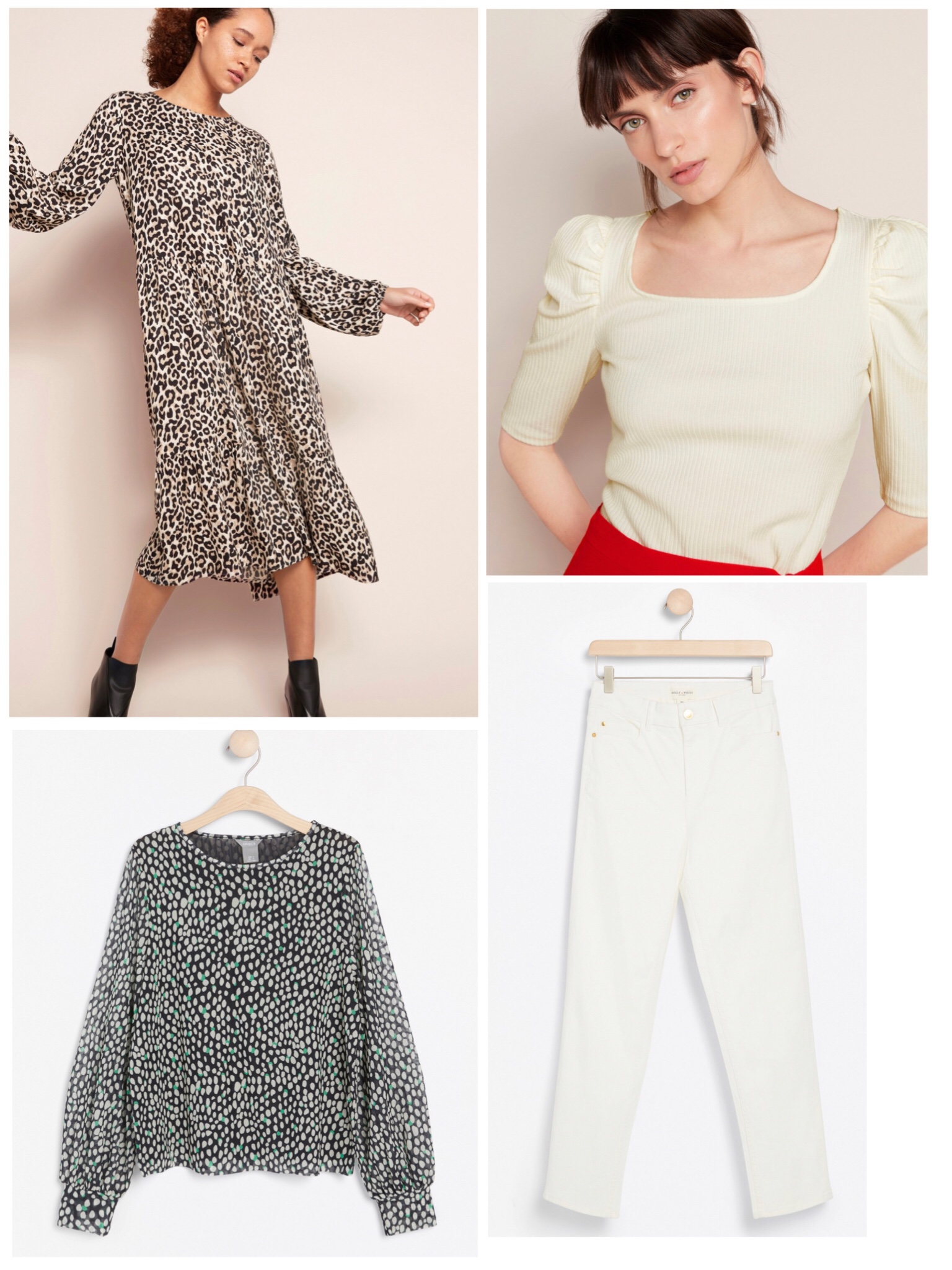 Leo klänning // Topp med puffärm // Mönstrad meshtop // Vita höga jeans