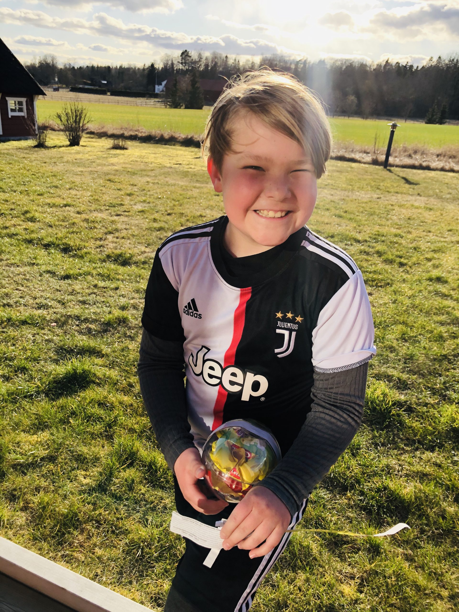 Milo spelade fotboll och fick till sin stora glädje sitt påskägg av mormor och morfar. Inget han räknat med för här är vi stenhårda med att det är på påskafton som skattjakten är och man får leta påskägg. En tradition jag tänker hålla i så länge han tycker det är minsta kul.