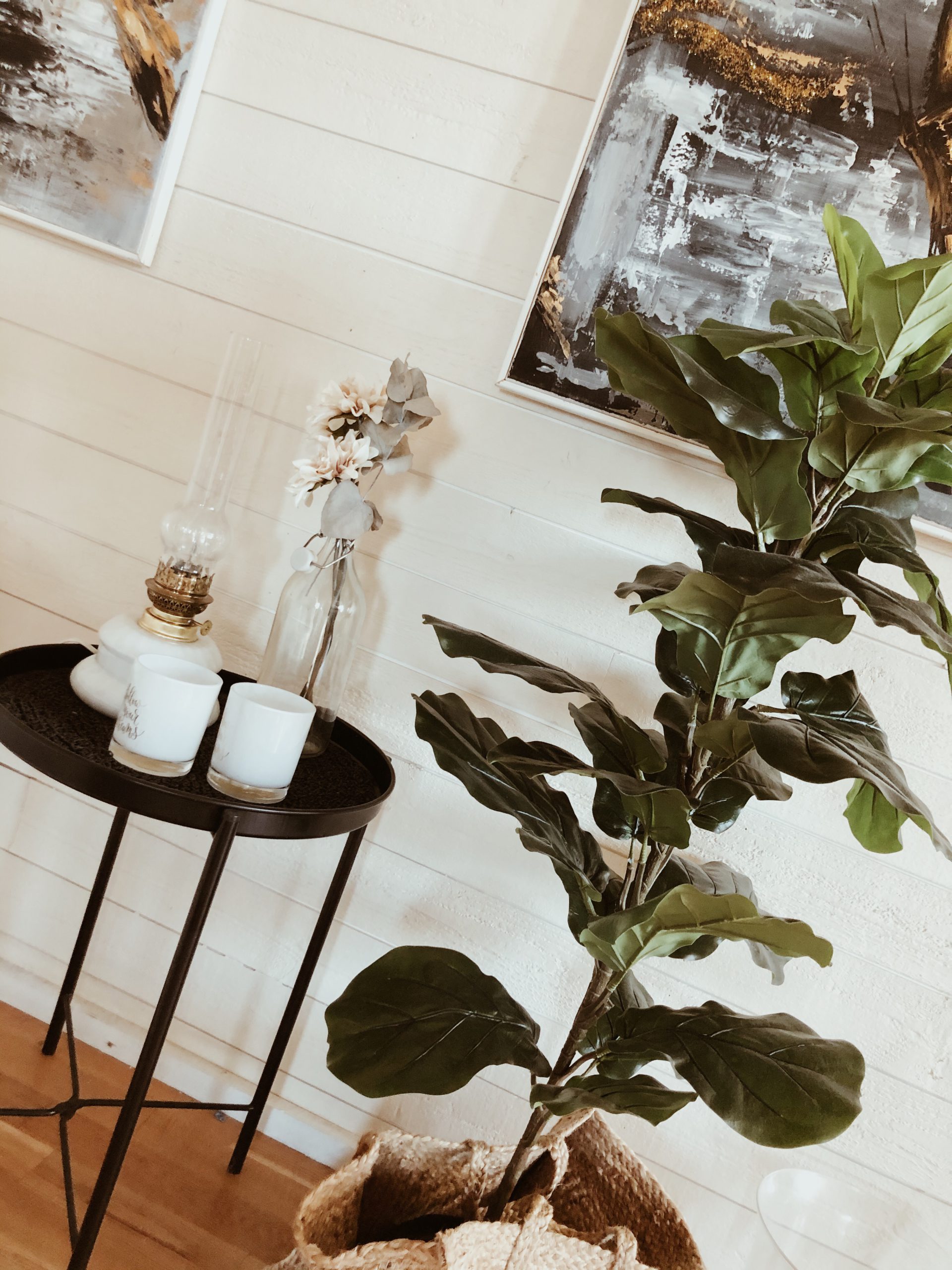 Har ju lite naturmaterial i korgen till blomman och så. Sen blir det en stor vas med hampa på det lilla brickbordet och på matbordet och så kuddar som matchar i fåtöljen som står i hörnet där.