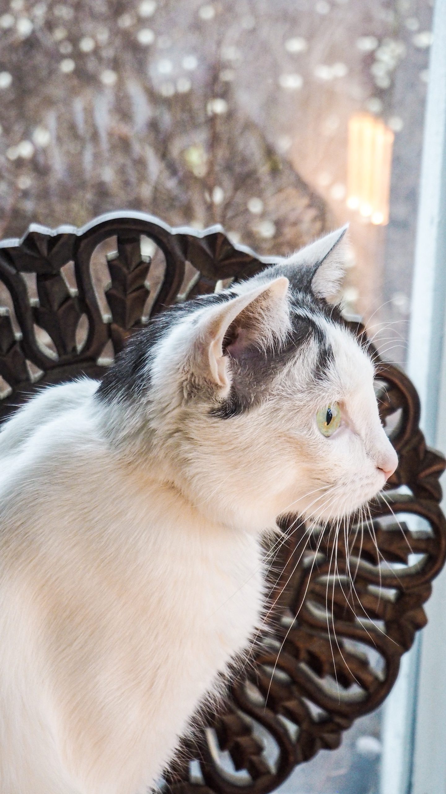 Så där sitter vår kisse också, man kan se hennes favoritplatser för det är små nosavtryck på fönstren