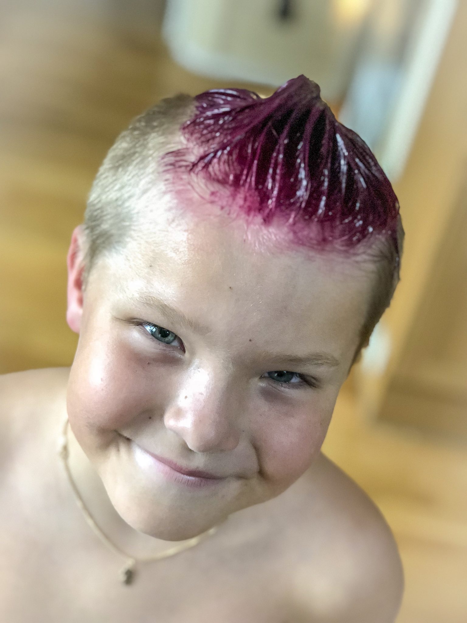 Igår kom Milo hem och sa att ”Nu vill jag färga håret lila”. Eeeh ok? Eeeh what? Vi fattade ingenting. Var kom detta ifrån helt plötsligt? Vi vet att en kompis till honom färgat håret blått, men lila?
