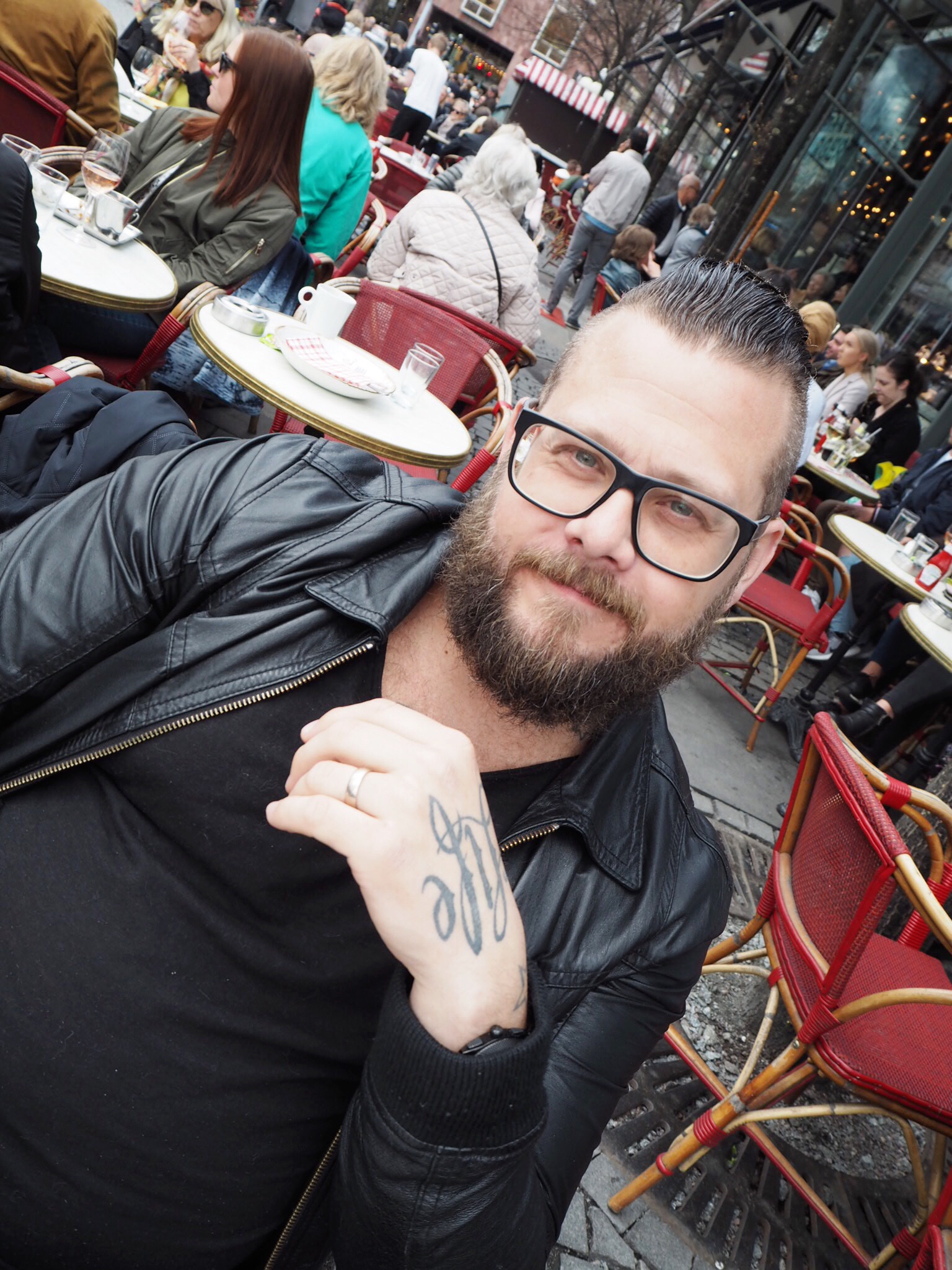 Det var trevligt att sitta och fika med Ralph Lauren och Michael Kors som grannar på ett folkvimlande Biblioteksgatan. Var sugen att gå in i Michael Kors butiken och titta på skor men det regnade så Tony kunde pusta ut. Haha…. 🙂