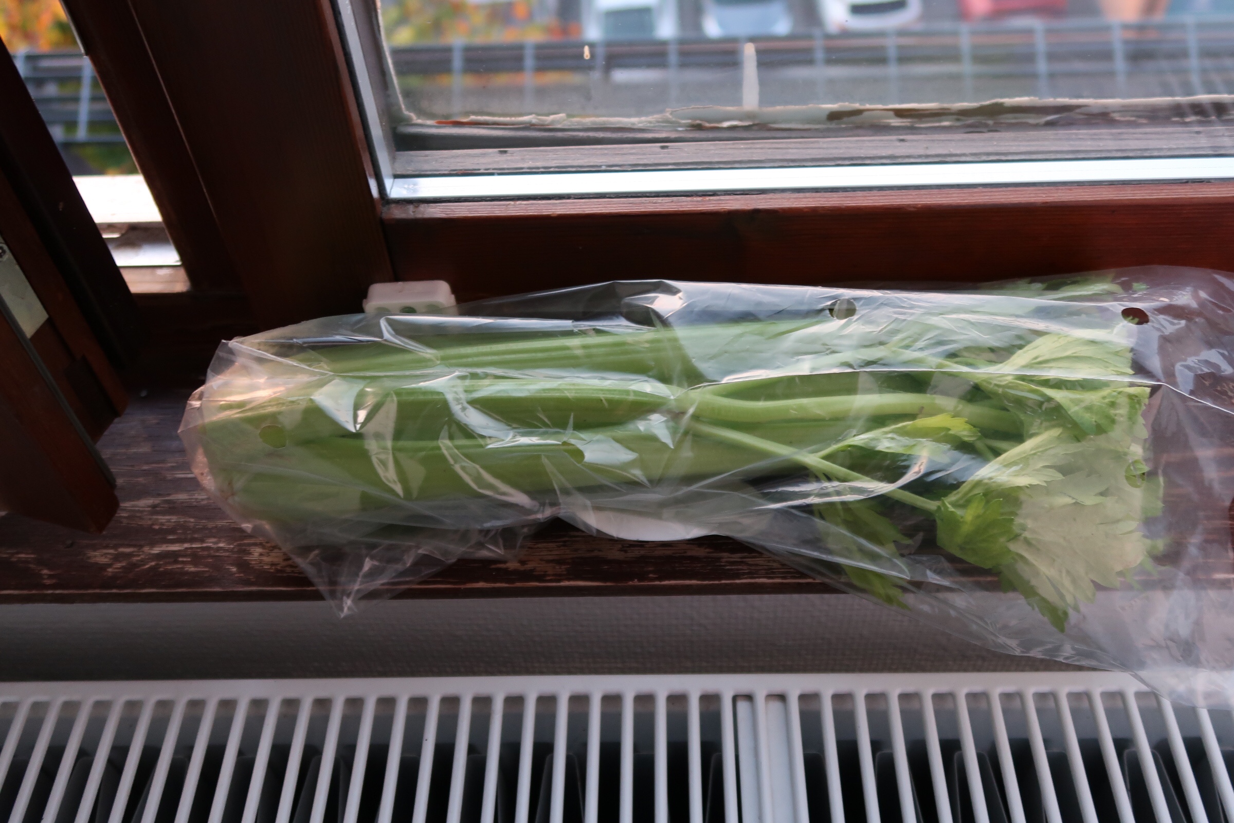 Selleriknippe på kylning a la hotell-style. Haha…. detta funkar fint då det är så kallt på nätterna, behövs inga kylrum eller kylskåp.