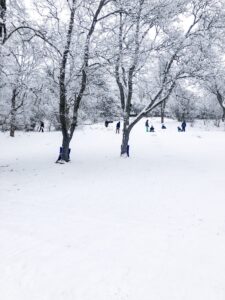Vi avslutade med pulkaåkandet på fiket. Varm choklad och lite gott till satt som en smäck.
