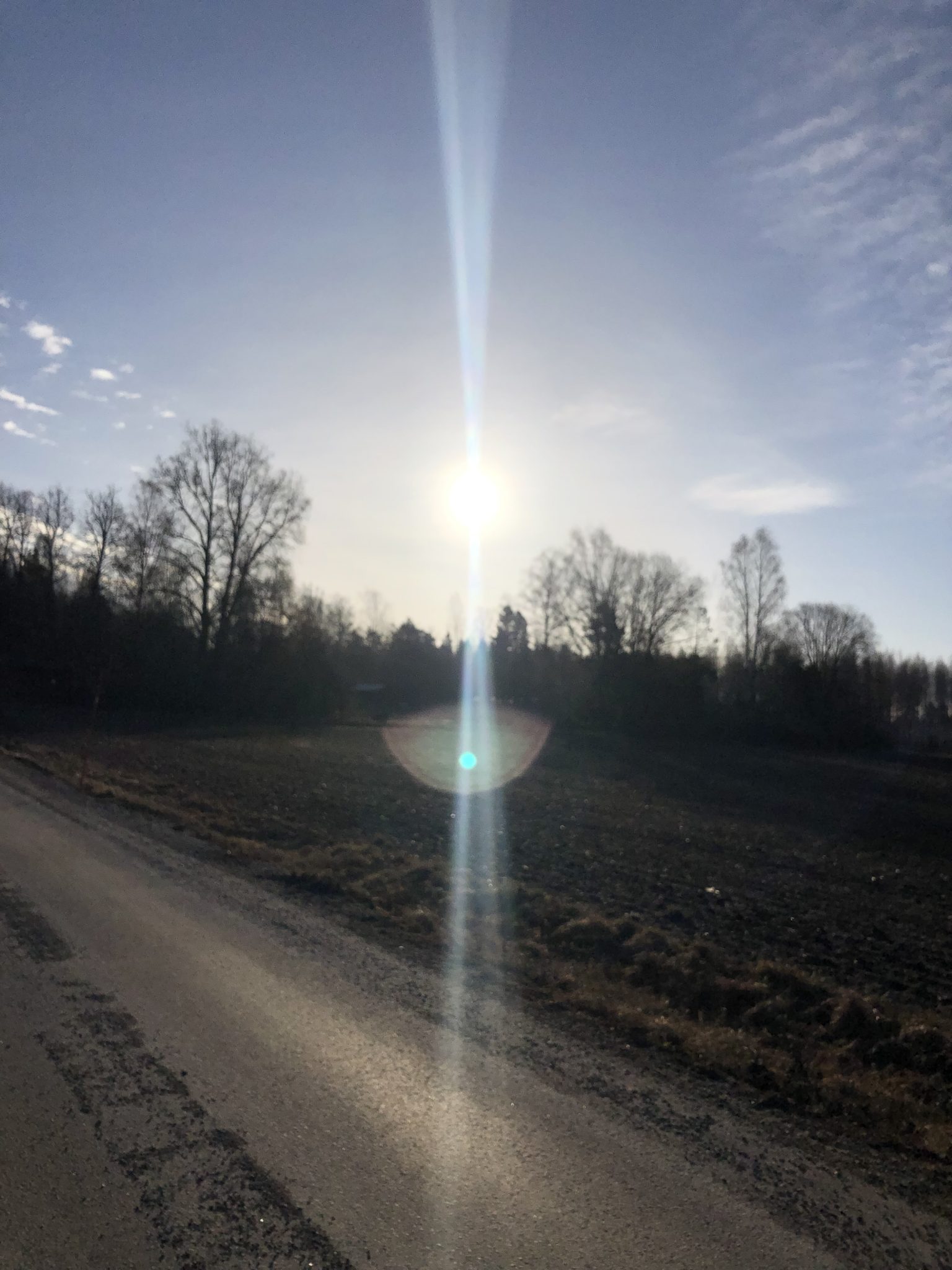 Jag var ute på en frisk promenad i morse. Solen sken starkt i ansiktet så bekymmersrynkan fick jobba hårt. Min rygg kändes som den skulle gå av på promenaden så jag fick verkligen jobba med pannbenet innan det kändes lite bättre. Jag gick nog mer än halva promenaden innan jag kände att det släppte lite. Fick sätta mig på huk och sträcka ut ryggen. Världens bästa knep om man inte kan lägga sig nånstans är att sätta sig på huk med fötterna helt i marken och luta sig framåt.