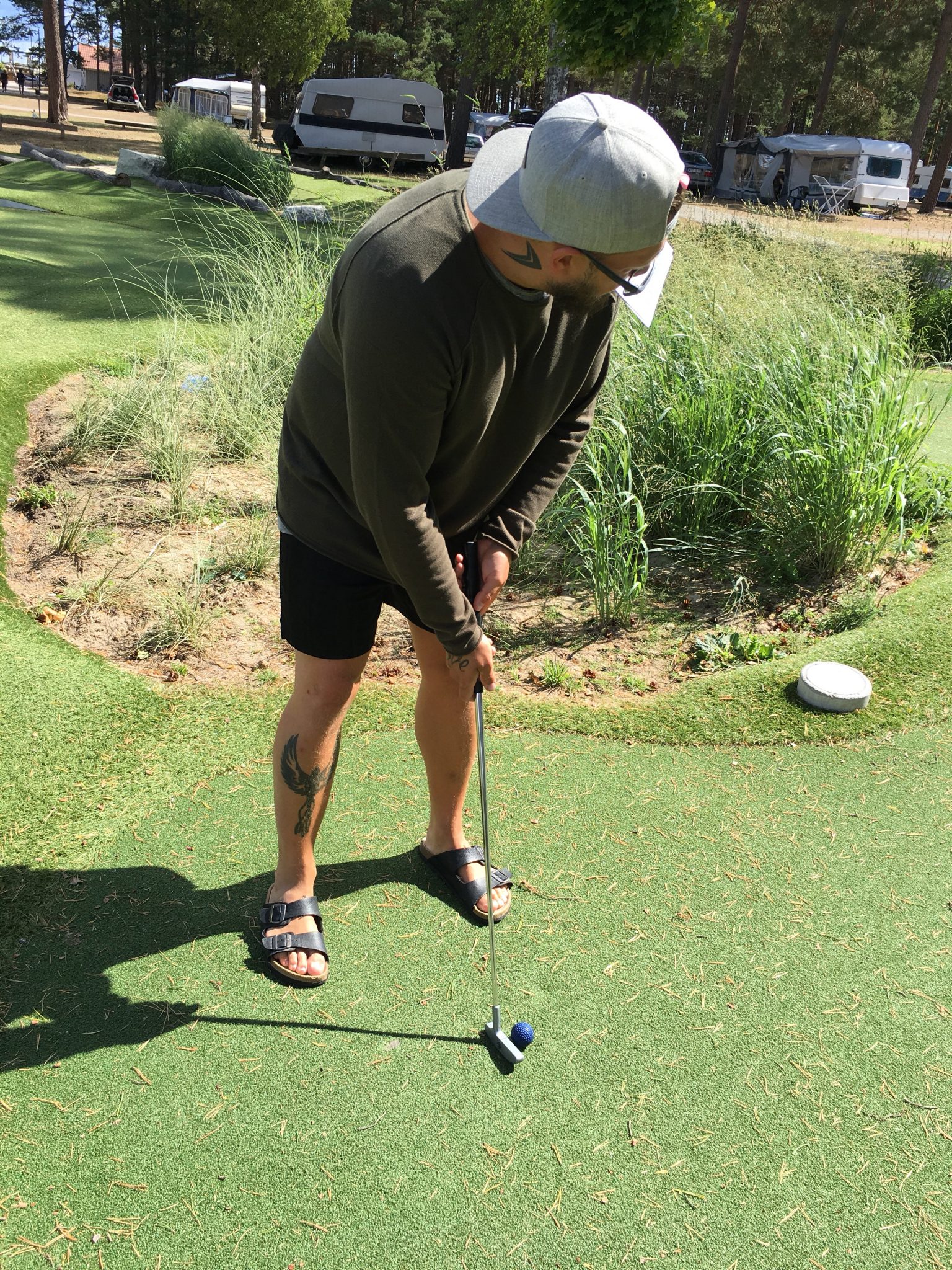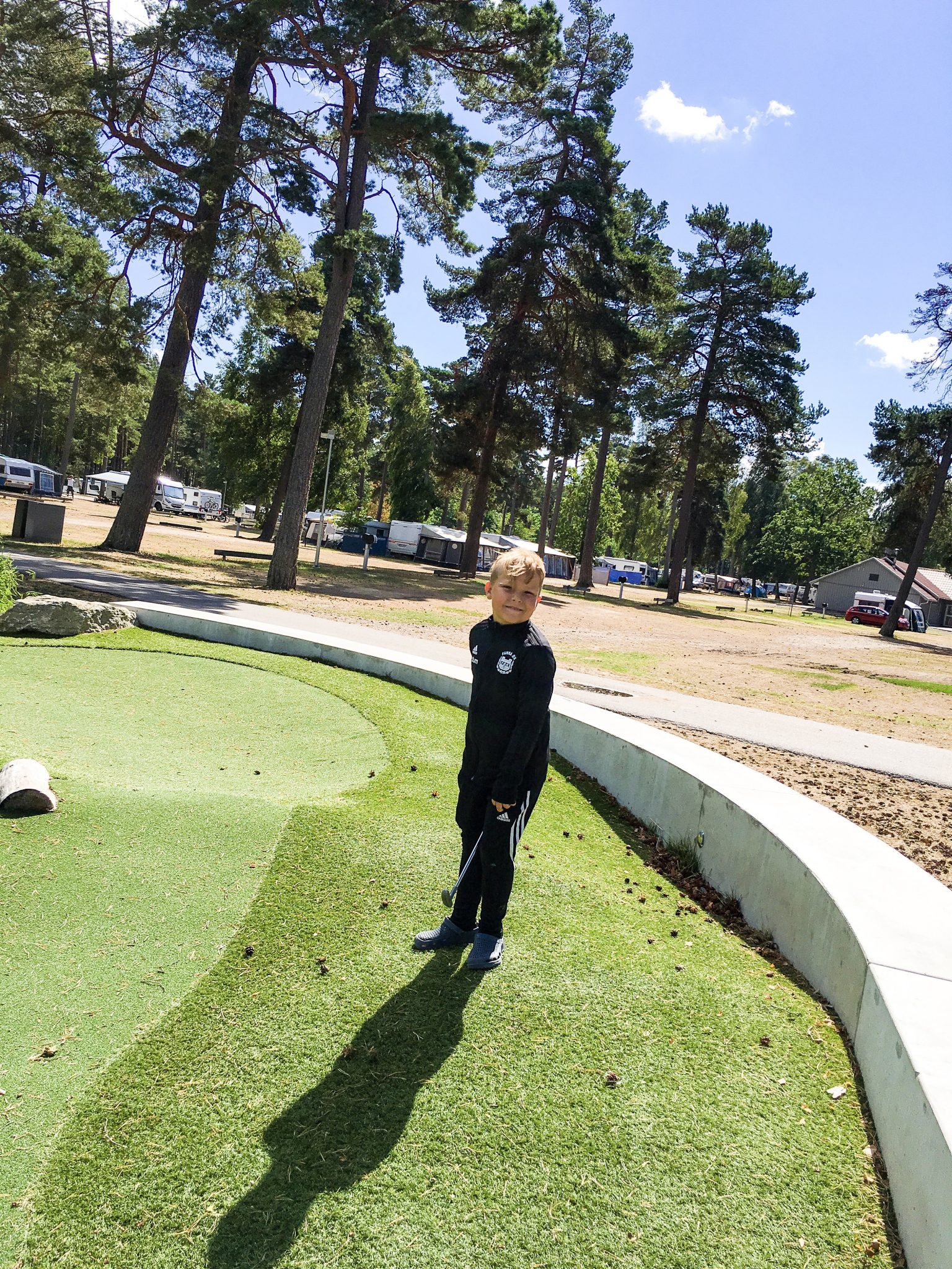 Vi spelade minigolf igår. Banan är verkligen skitkul, lite annorlunda och rolig. Absolut inte för svår för barn vilket blir lite skoj för då är vi alla på samma nivå. På 12 Barbro igår så blev ställningen: Milo: 37, Jag: 38 och Tony: 39. Vad är oddsen liksom?