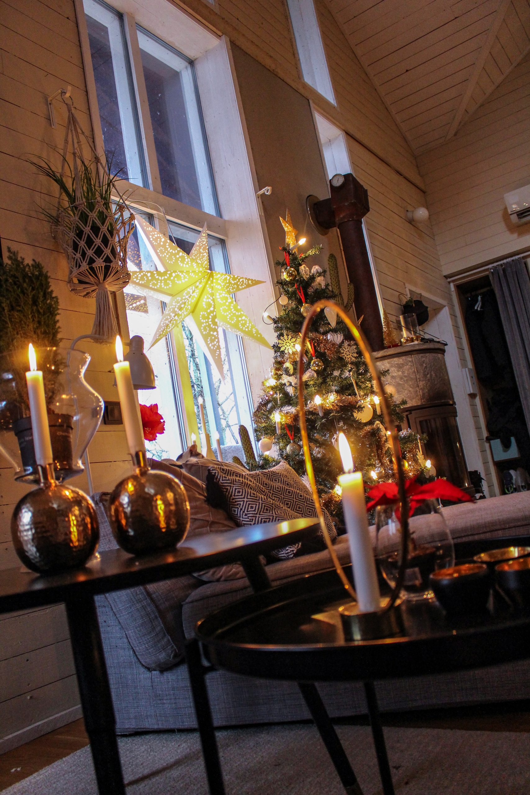 Trots detta otyg till väder som har tagit formen av ett grått täcke med flera lager så kämpar vi tappert med julkänsla. Det eldas ljus och tänds brasor om vartannat. Tomten har sin lykta med extra brinntid på värmeljusen. Jag vet inte hur många paket jag avverkat redan? Sjuk åtgång här hemma. Men vad mysigt det är med ljus. Det gör allt den här årstiden.