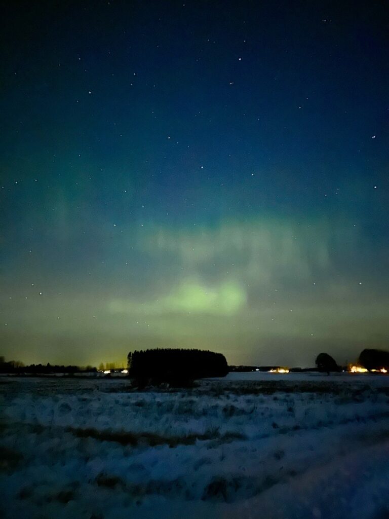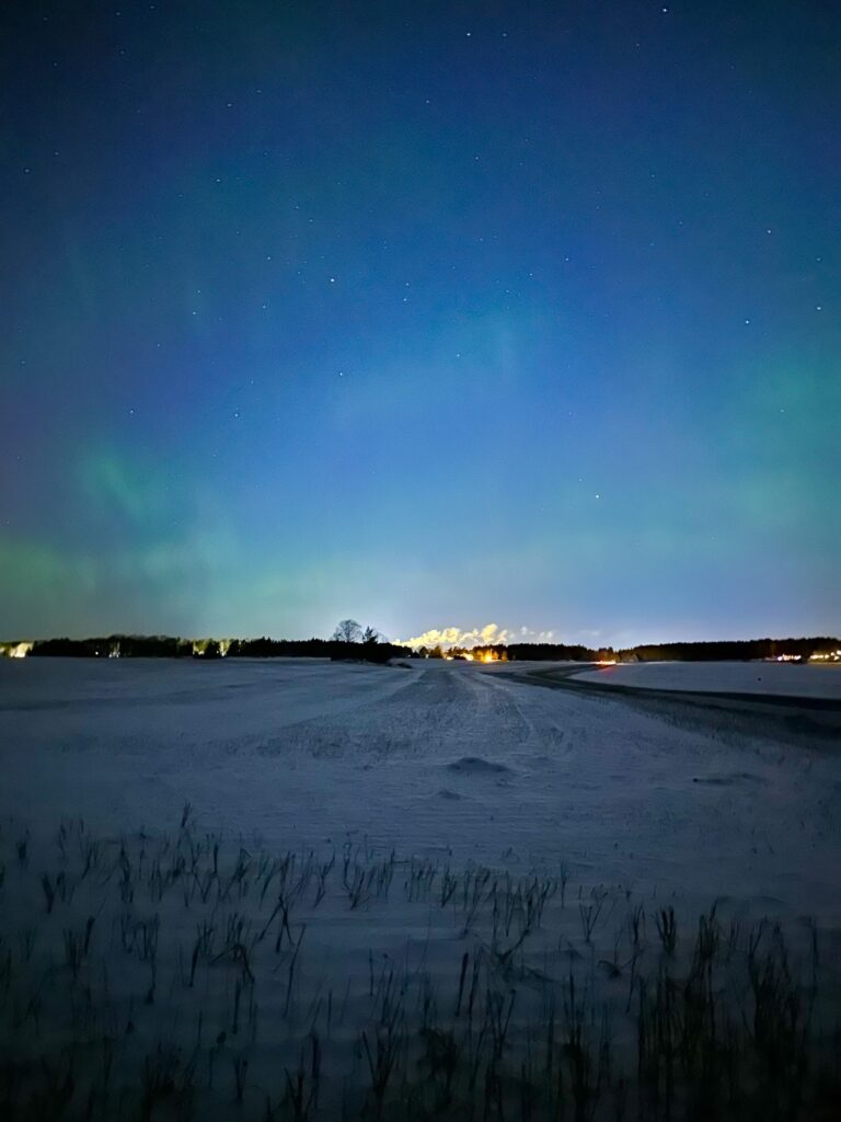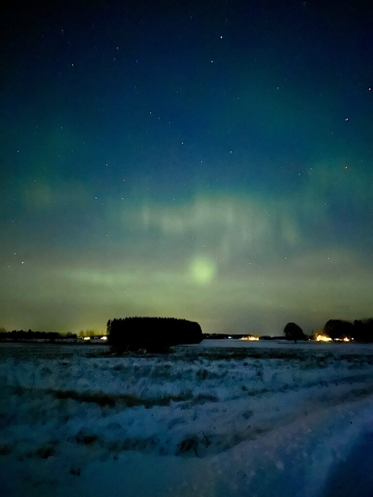 På kvällen tog vi bilen för aurora-jakt. Tony värmde bilen & sätet ordentligt till sjuklingen innan jag stapplade ut. Ja min rygg är inte snäll nu när man legat så mycket men den reder sig säkert den också så fort man kommer upp helt på benen. I alla fall, tillbaka till aurora. På dessa breddgrader är det sällan men ser dem med blotta ögat. Men dessa kunde jag faktiskt ana även om det blev skarpa genom kameralinsen. Så vackert! Drömmer fortfarande om att stå under ett som sprakar i grönt rött och lila.