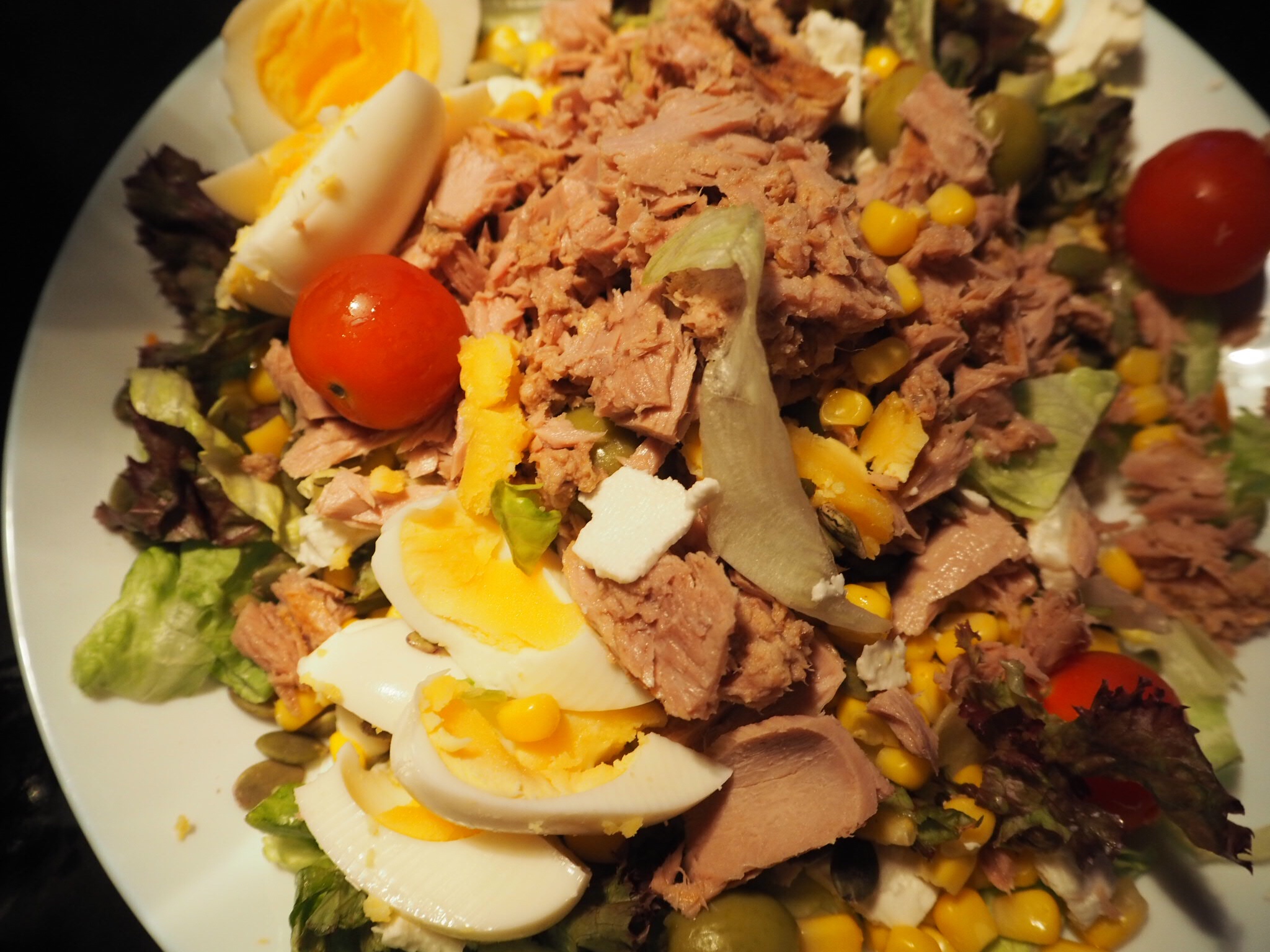 Svängde snabbt ihop en tonfisksallad som jag just smockat i mig här. Jag och Majlis delade på tonfiskburken. Hon blev sååå glad. Hon är en petig liten dam den där men tonfisk verkar alltid gå i.