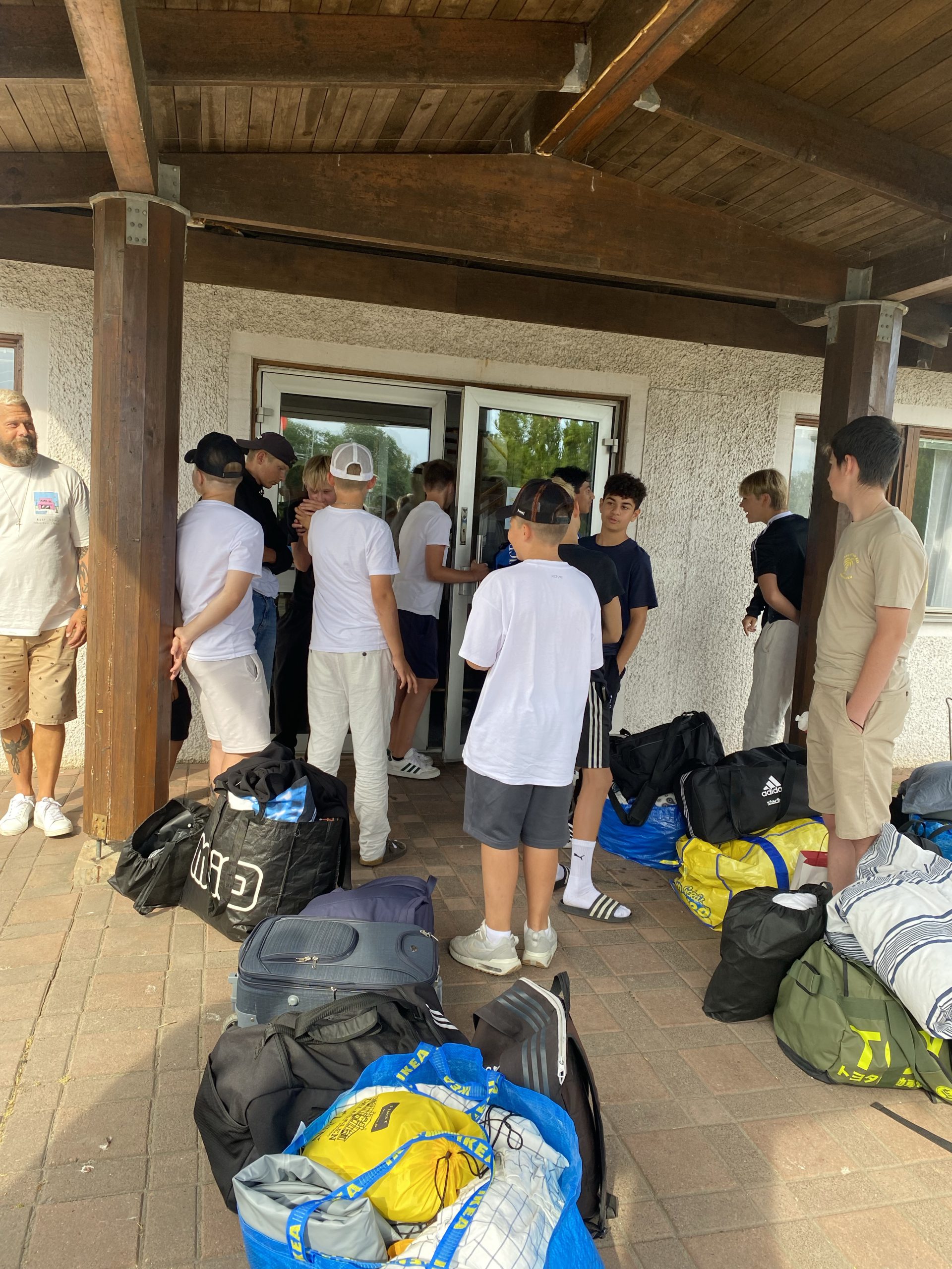 Här väntade se på att få ”checka in” med sin packning till Katedralskolan. Det var IKEA-påsar och luftmadrasser var man än tittade. Så härligt på något sätt! Förväntansfulla killar som var riktigt laddade för en helg med fotboll.
