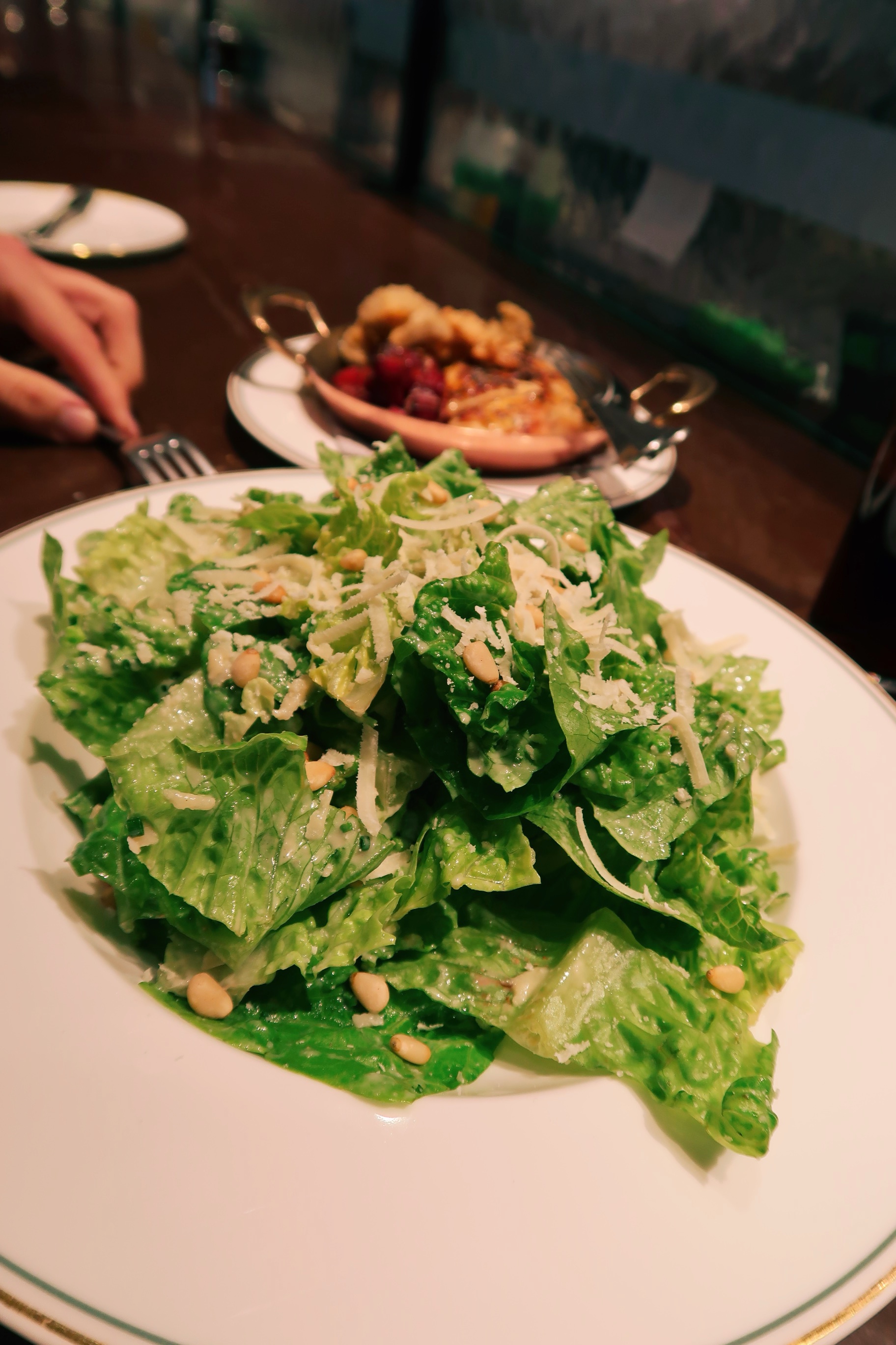 Tony valde en Ceasarsallad som görs vid bordet, han tyckte den var fantastiskt god. Tillbehören i form av det svartrökta sidfläsket, majskycklingen m.m. fick man vid sidan av.