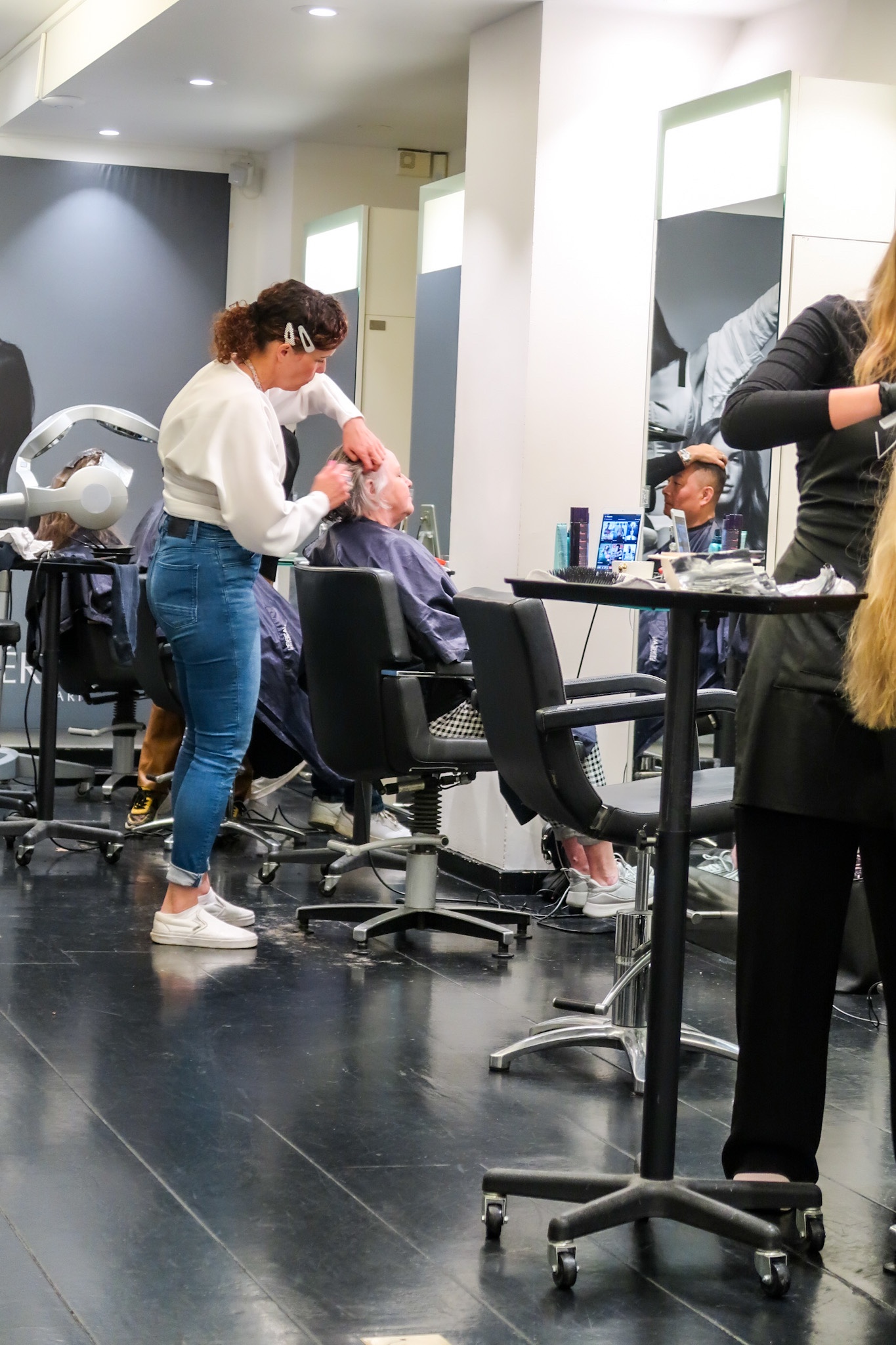 Apropå föräldrar, mamma har blivit så sugen att gå på samma salong som jag går till. Jag har talat så gott om det så nu ville hon också dit. Jag vet exakt hur mycket hon njöt just på denna bilden, det bästa hon vet är när någon håller på i hennes hår nämligen. 🥰❤️ Så igår blev hon ompysslad med uppfräschning av hennes gråa hårfärg och en klippning. Efter det så bjöd jag henne på lunch. En mysig mamma-dotter idag i storstan blev det.