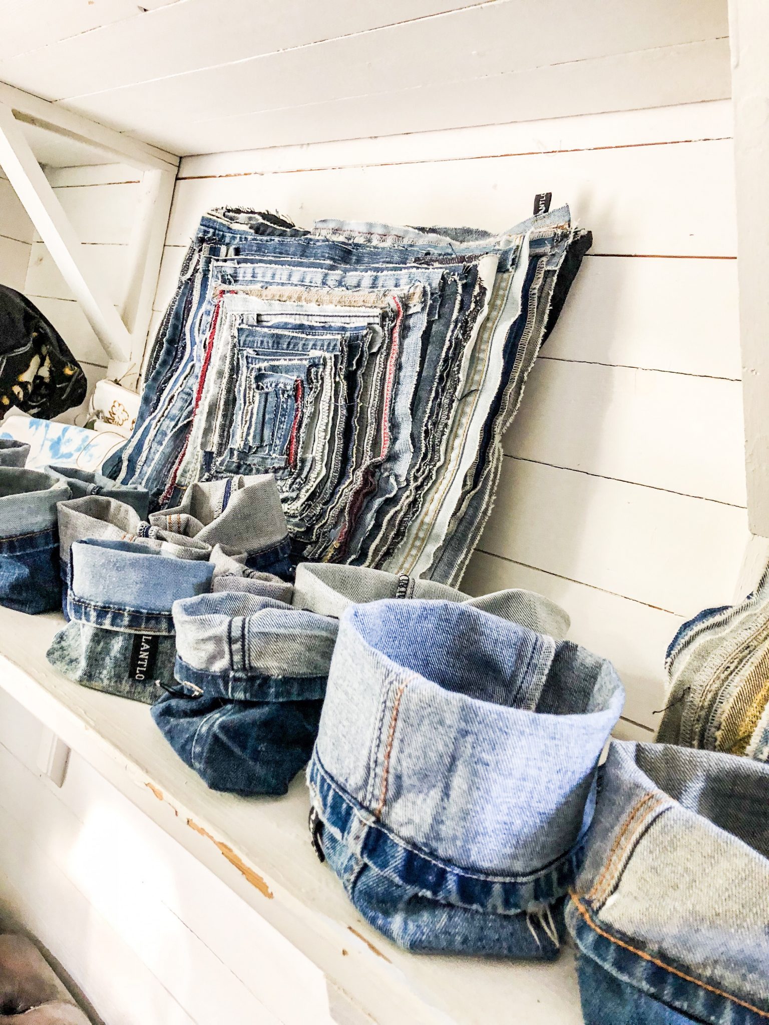 Vi besökte även deras lilla butik som också finns där på gården. Lantlollorna återvinner gamla jeans och tyger och syr sen allt av det. Så coolt!