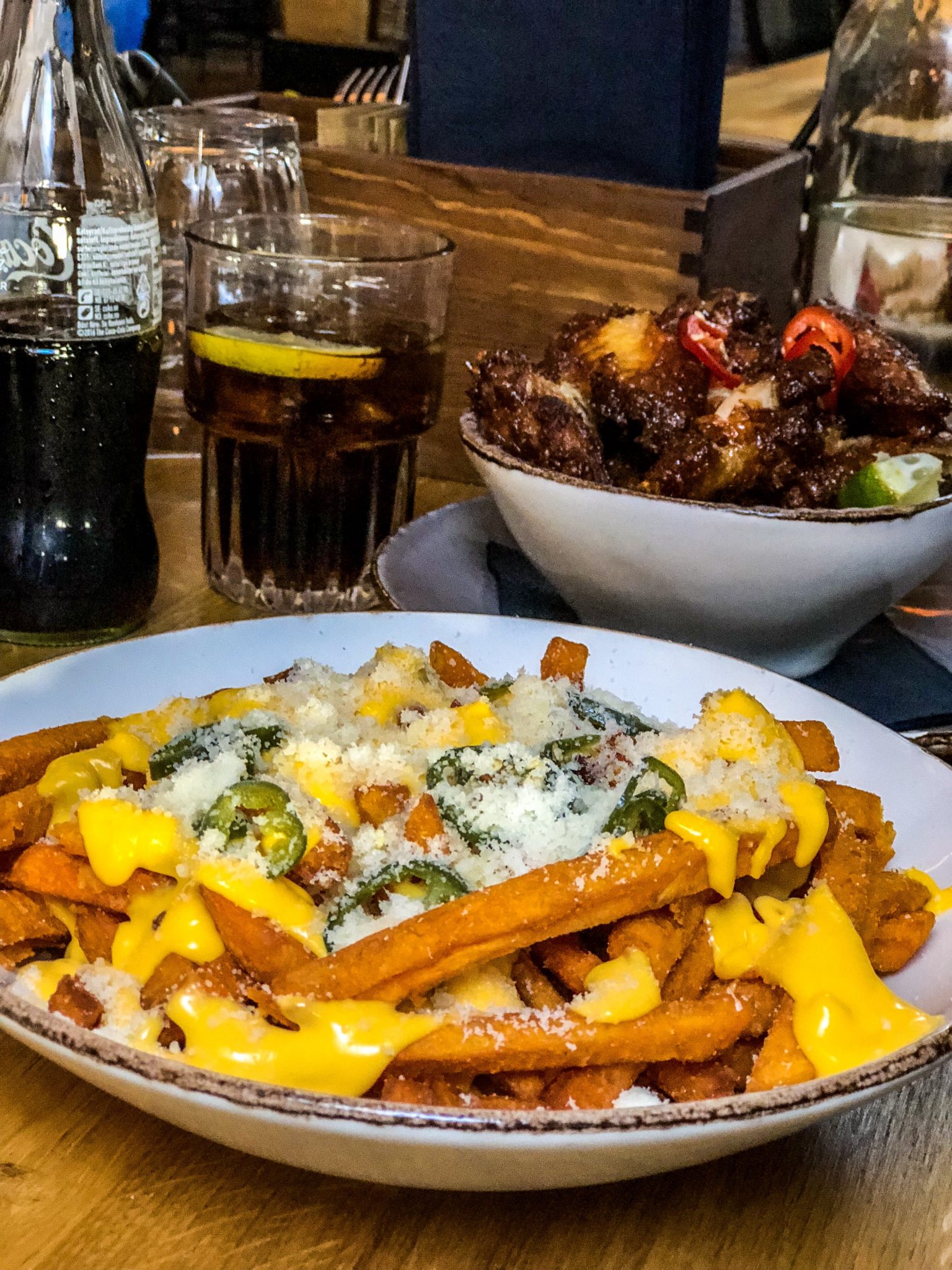 Alltså maten var magiskt god. Kycklingvingarna som hade en söt smak med citron. Sötpotatis som var gratinerade med cheddar och parmesan. Ämen holyhell alltså. Sååå gott! Testa det stället nångång. Absolut inget sponsrat, bara ett tips från mig.