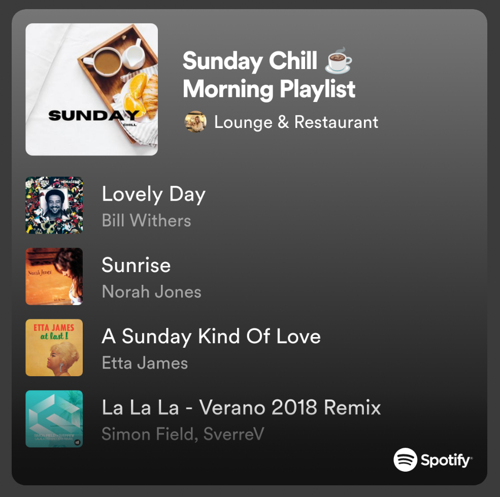 När jag påtar hemma, du vet bakar eller städar, älskar jag att lyssna på något. Det kan vara allt från ljudbok till pepp av någon motivatör på Youtube till en podd, sen älskar jag och lyssna på olika musiklistor. Det är så man kan hitta nya favoriter i sitt liv! Den här Söndagslistan är superhärlig, perfekt när man fixar i köket.