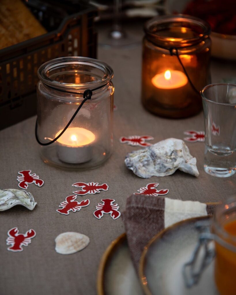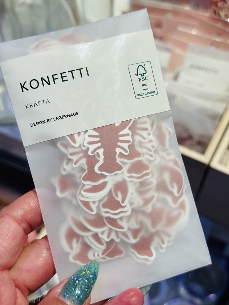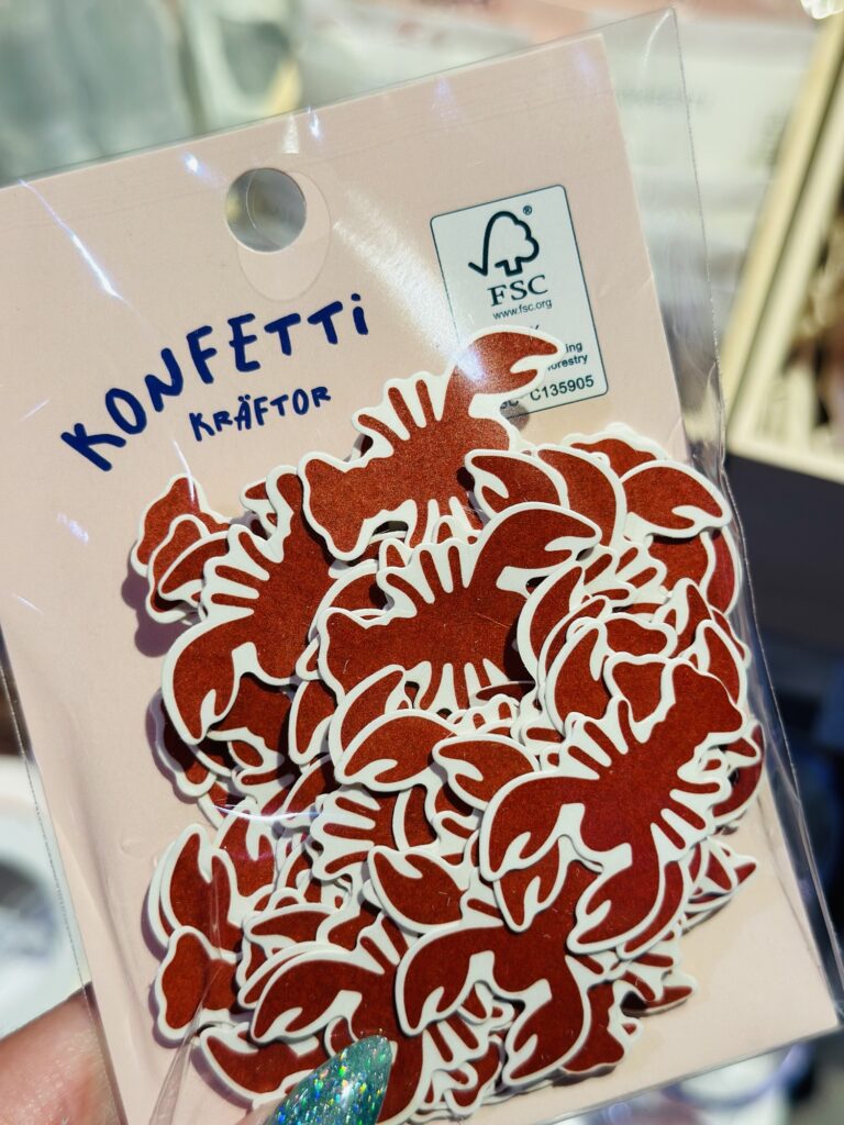 Härlig kräftkonfetti (<klicka), kan väl inte bli mer kräftskivekänsla än såhär? Alltid när vi har festligheter så försöker jag ha någon form av konfetti på bordet.