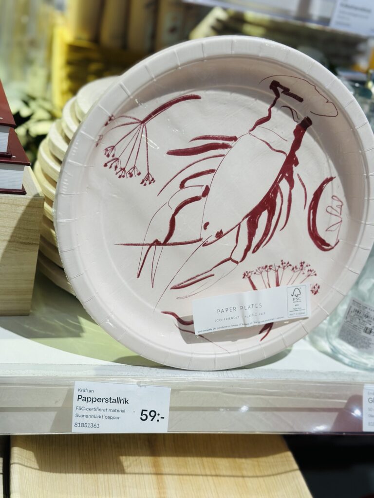 Underbara papperstallrikar (<klicka) med en festlig kräfta med ett vinglas. Tog ett tag innan jag upptäckte det, men den var ju hur festlig som helst. De nedersta tallrikarna hittar du HÄR, lite mer fancy och clean kanske.
