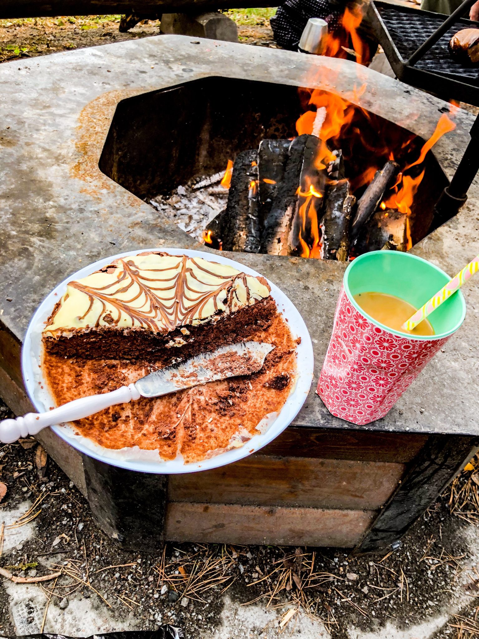 Sen avnjöt vi lite glutenfri spindelkaka med grädde till efterrätt. Det var gött till kaffet där i den småbitande kylan.