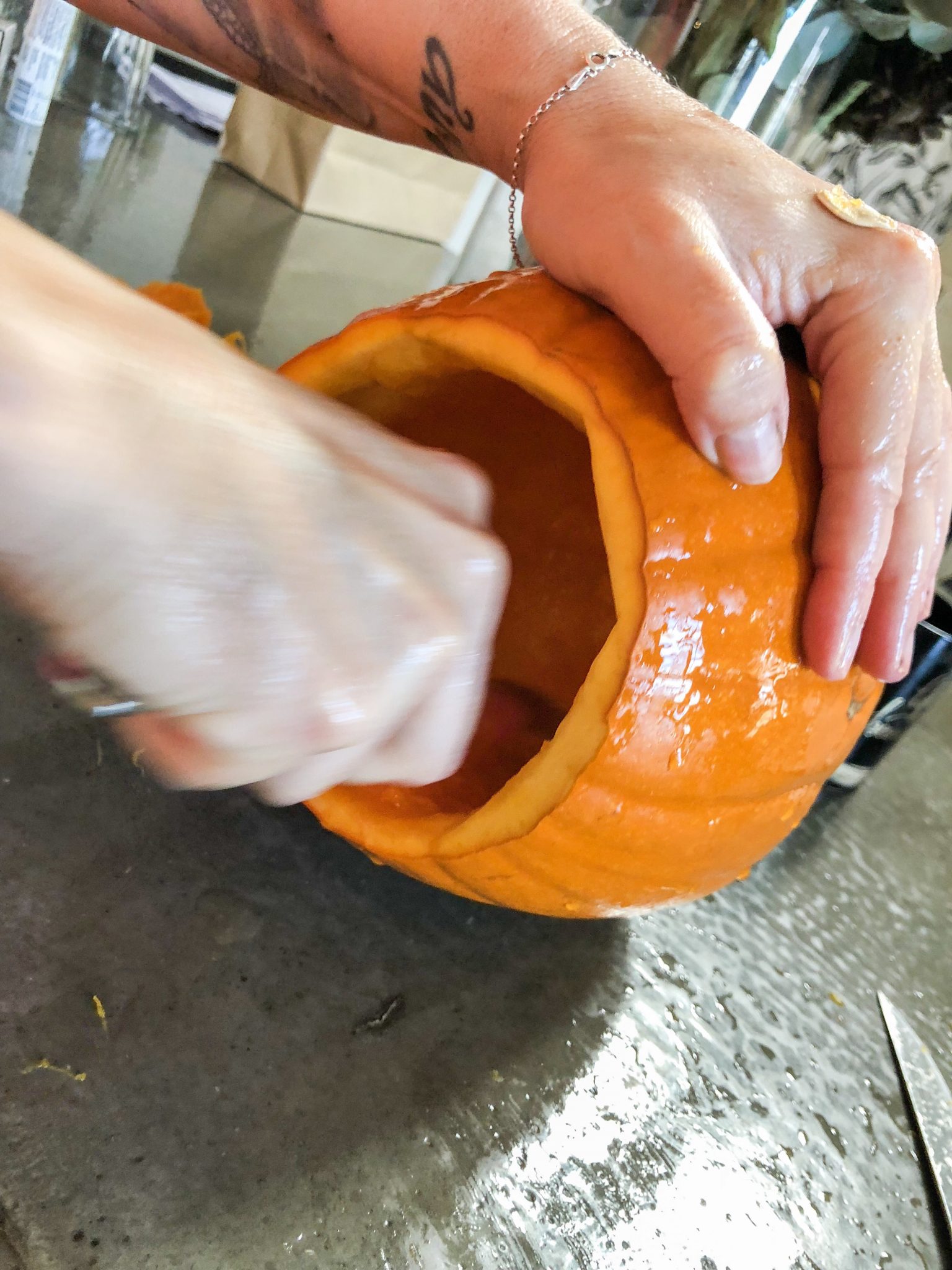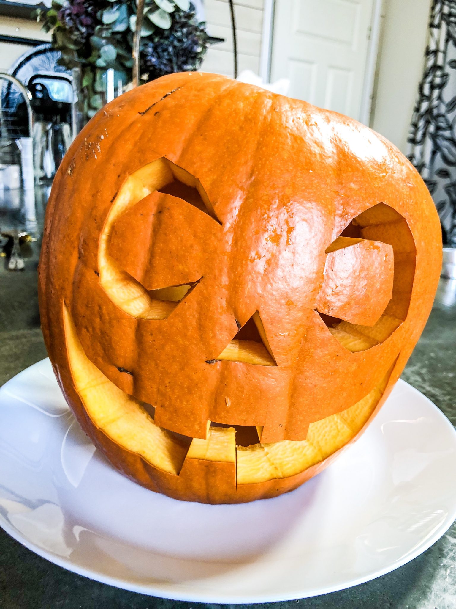 Här karvade jag i alla fall mitt livs första pumpa. Har aldrig gjort det tidigare och det var ju riktigt skoj. Den lös så fint sen med ljuset inuti. Ett tips är att ha i ett sånt batteriljus.
