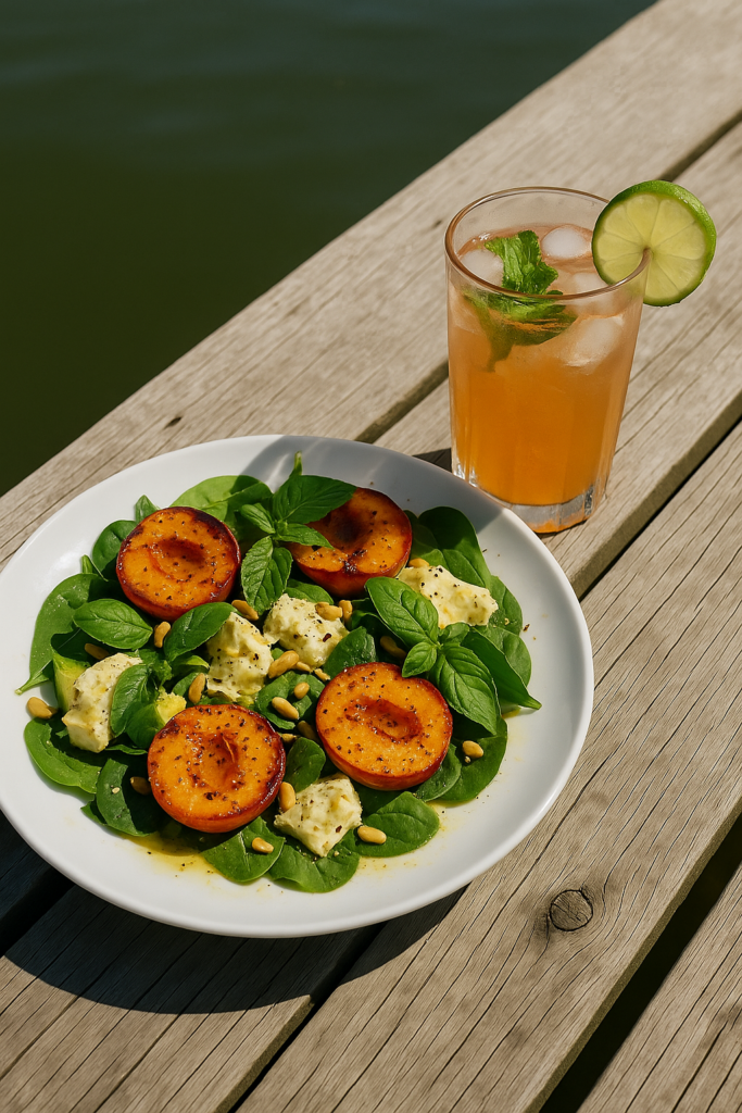 Sommarsallad med grillad nektarin, mozzarella & basilika