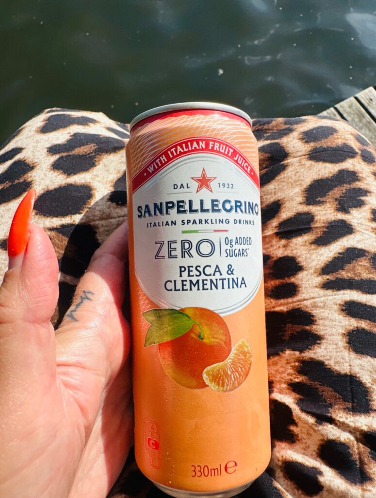 Och så måste jag nämna en riktig sommarfavorit i glaset….jag har typ fått craving på denna. SanPellegrino pesca & clementina, en persiko & clementindryck som är både söt och syrlig. Känns nästan lite lyxig, särskilt kall direkt ur burken på bryggan. Har blivit min go-to när jag vill ha något fräscht och alkoholfritt med sommarkänsla och istället för pepsi max. Slutade för över en månad sedan.