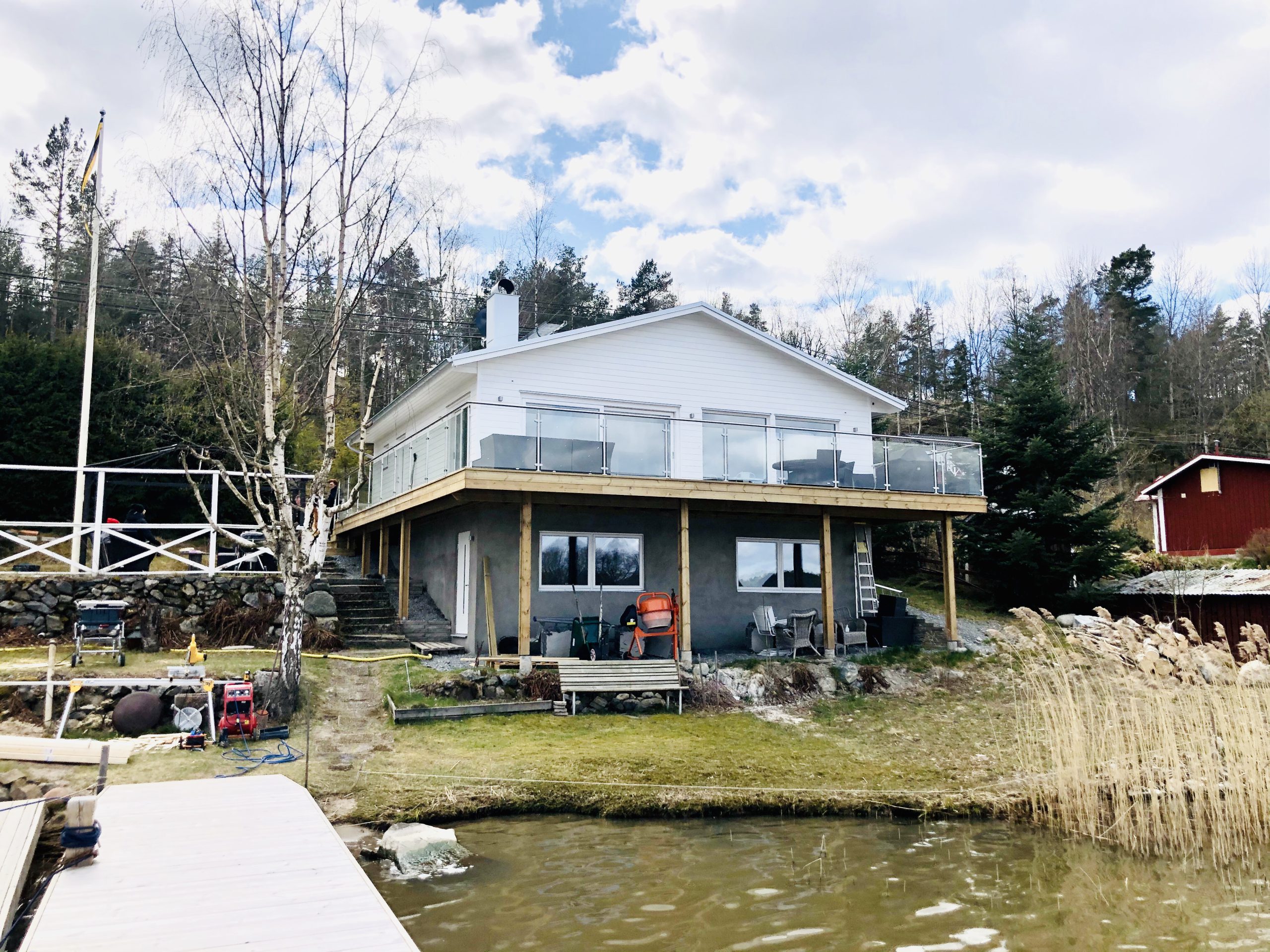 Igår åkte vi och utefikade hos våra vänner Carola och Nisse. Dom har nyligen rivit ett hus och byggt ett nytt uppepå och det är så galet fint så det finns liksom inte ord! Det ligger bara några meter från vattnet och platsen är verkligen magiskt fin. Som dom slitit med det här huset alltså och nu får man äntligen se resultatet. När bastun som Nisse håller på att bygga är klar åker vi dit sen i sommar, då ska det badas och bastas och njutas.