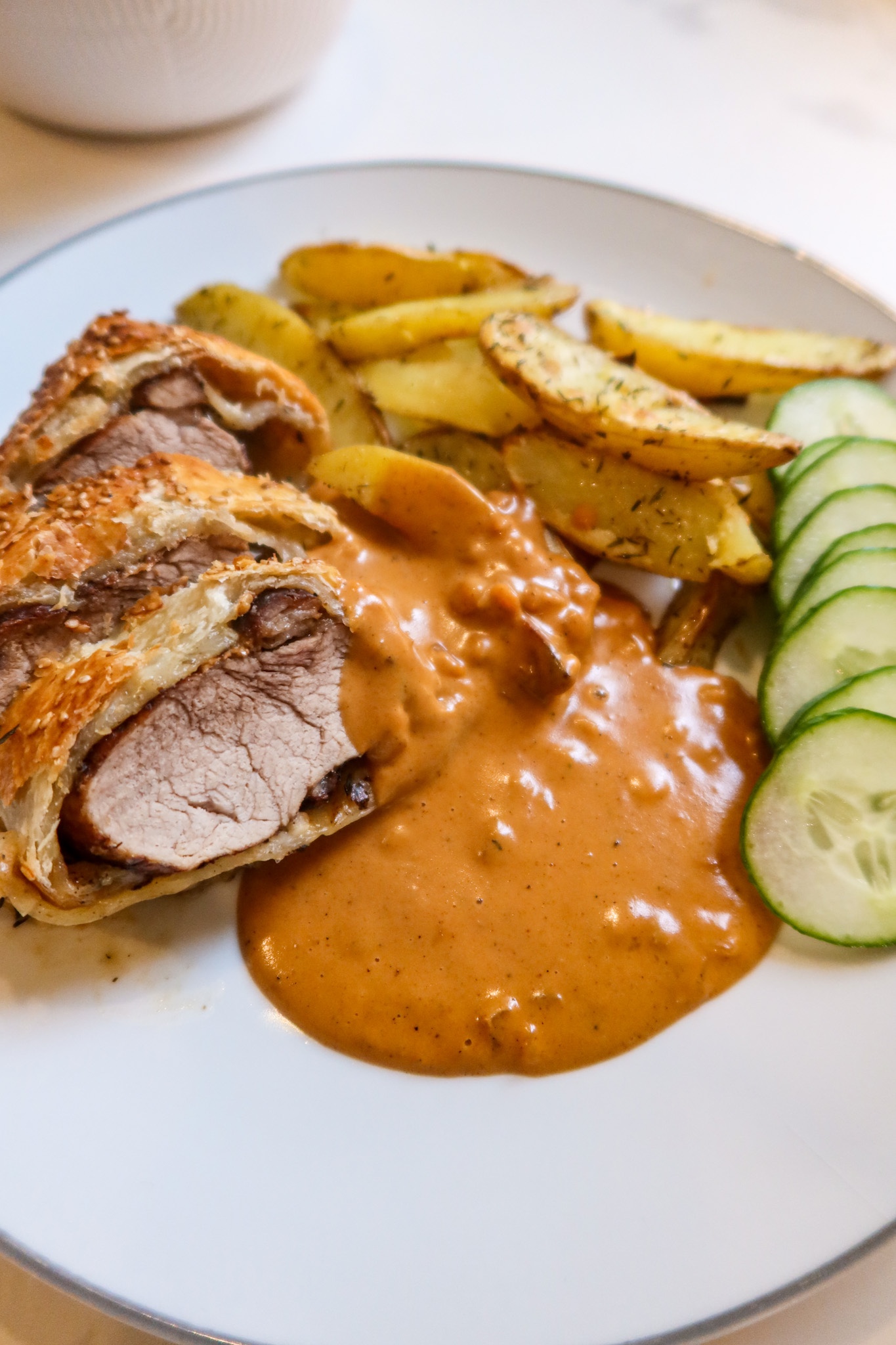 Smördegsbakad Fläskfile med tryffelbrie, ca 3-4 p