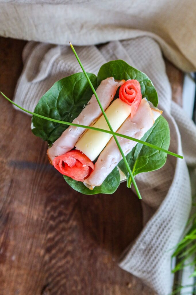 • Lägg på rullade ost- och kalkonskivor