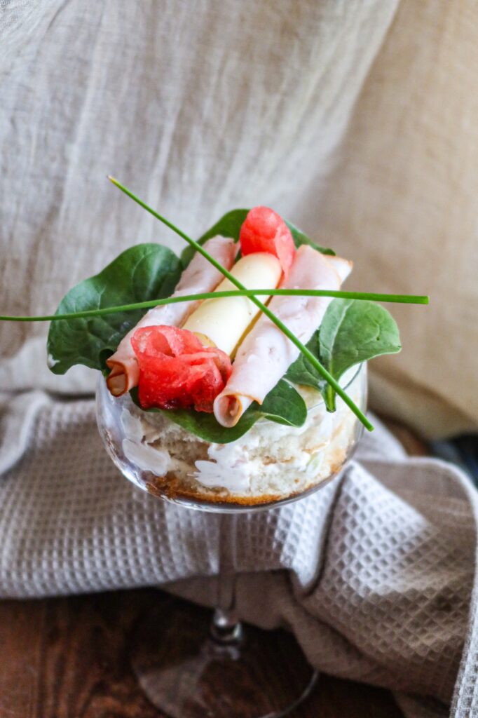 Tips! Tematisera varje glas, gör t.ex. en med skagen, en med vegetarisk röra och en med klassisk skinka & ost. Perfekt till mingel eller buffé!