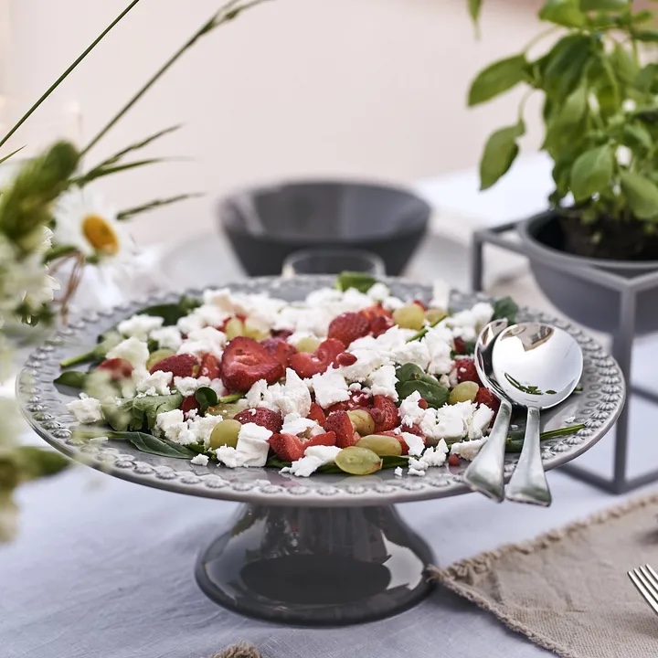 Tips på vad man även kan använda tårtfat på fot till. Servera en härlig sommarsallad på. Ser ju så himla härligt ut! Denna sommarsallad är det jordgubbar, vindruvor, spenatblad och fetaost på. HÄR hittar du tårtfaten.