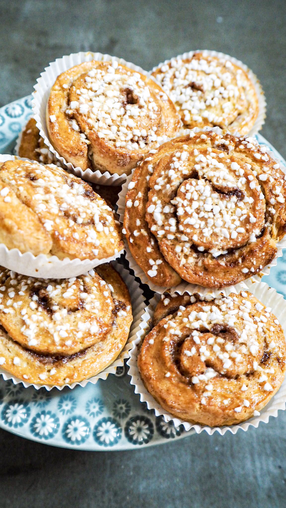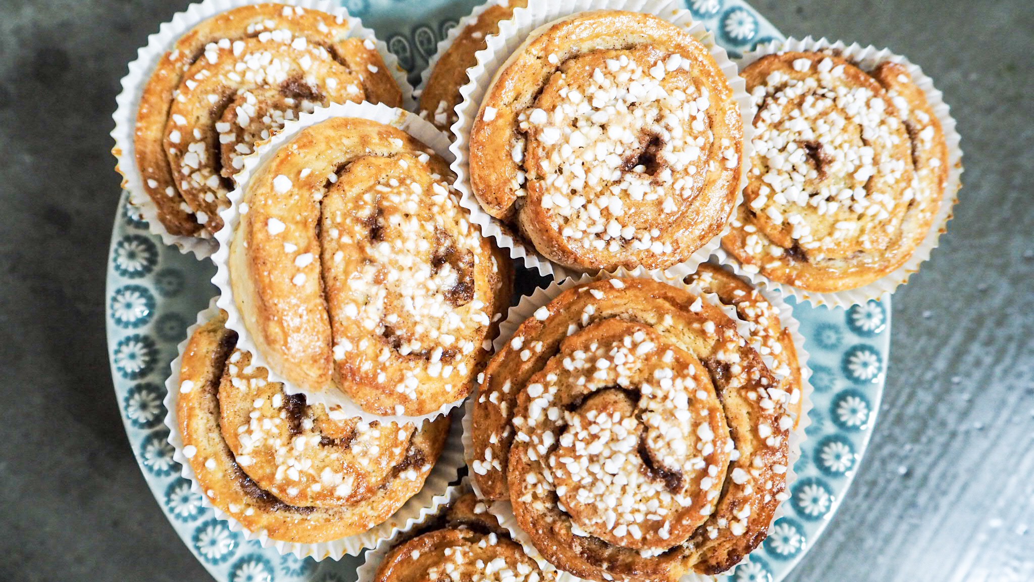 7) Pensla bullarna med vispat ägg och strö över pärlsocker. Grädda mitt i ugnen i 10-15 minuter. Ät & njut!