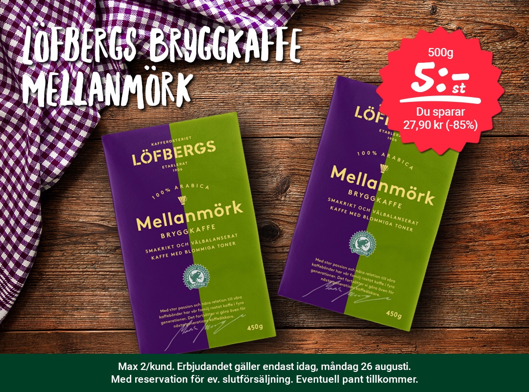 Kolla in detta erbjudande då? Kaffe för 5 spänn paketet, gäller bara idag. HÄR hittar du det!