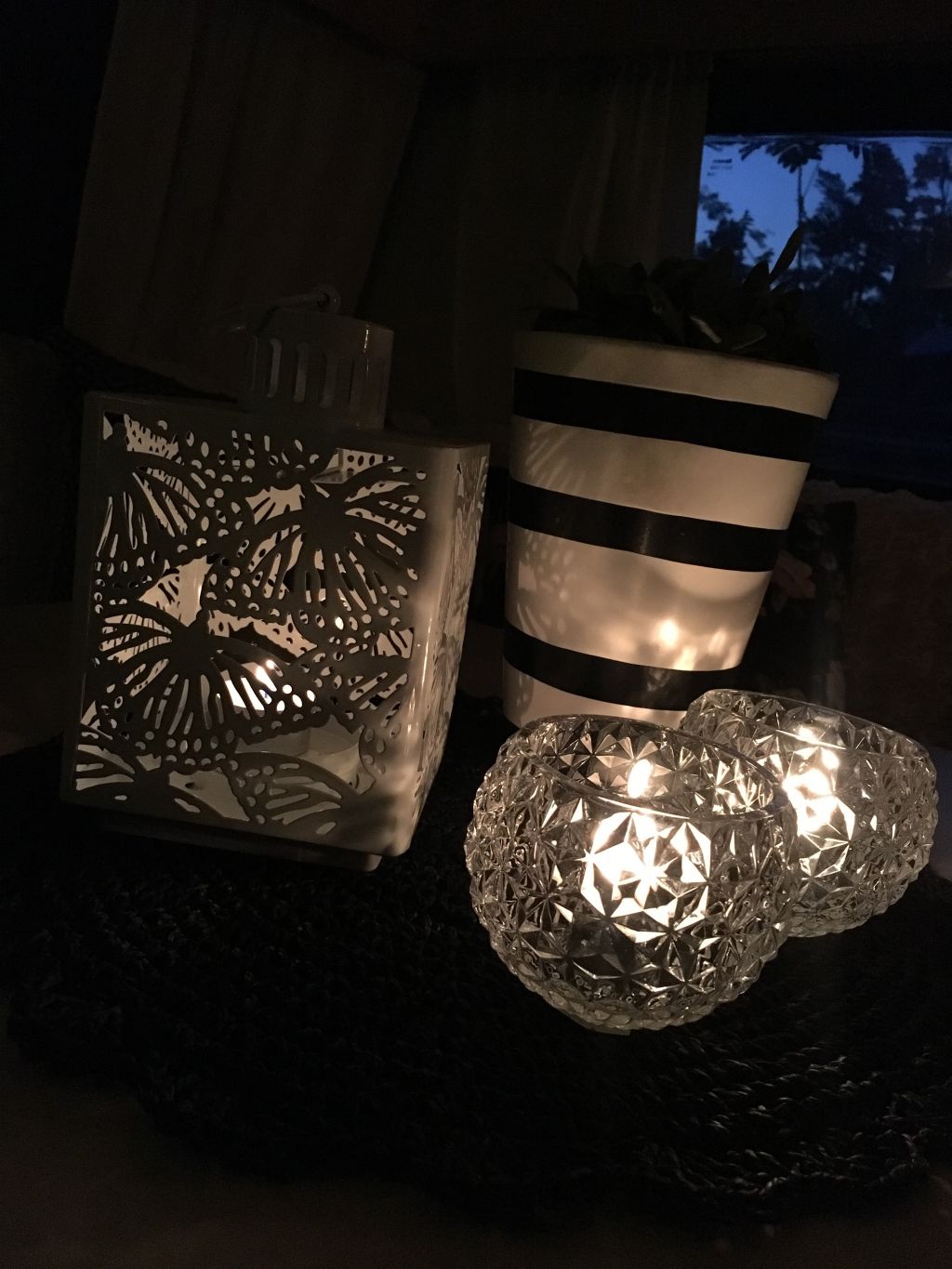 Det var inte liiiite mysigt att tända ljus och ha lite mys i husvagnen igår kväll.