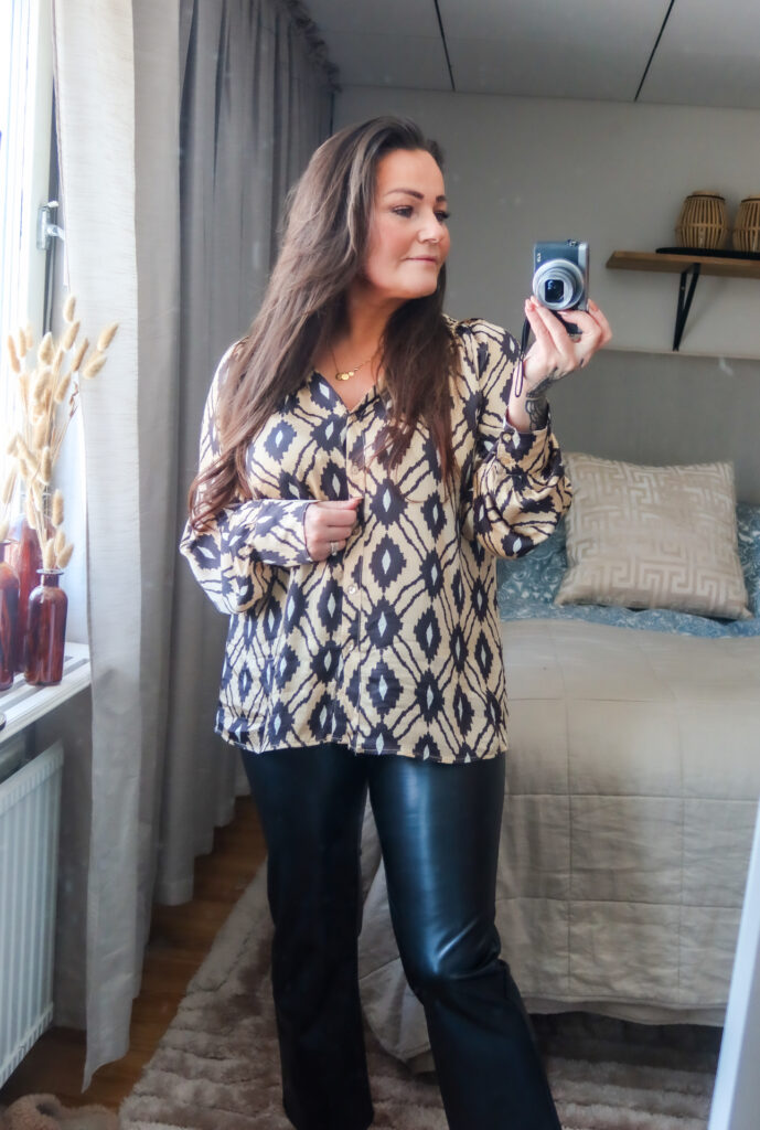 Mönstrad satinblus (REA) // Coatade leggings (supersköna)