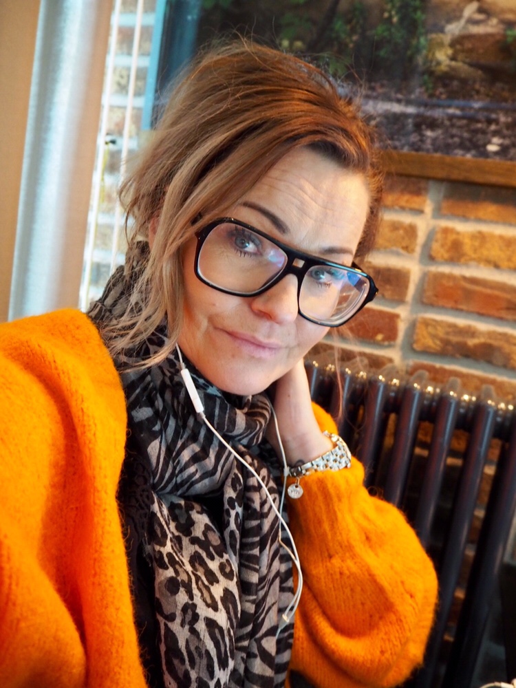 Älskar min nya kofta i knallorange färg. Den piggar upp en annars jäkligt sliten Nina. Jag får sitta och kura här i mitt lilla hörn bredvid elementet som jag jobbar vid tills det är dags att ge sig ut i kylan igen.