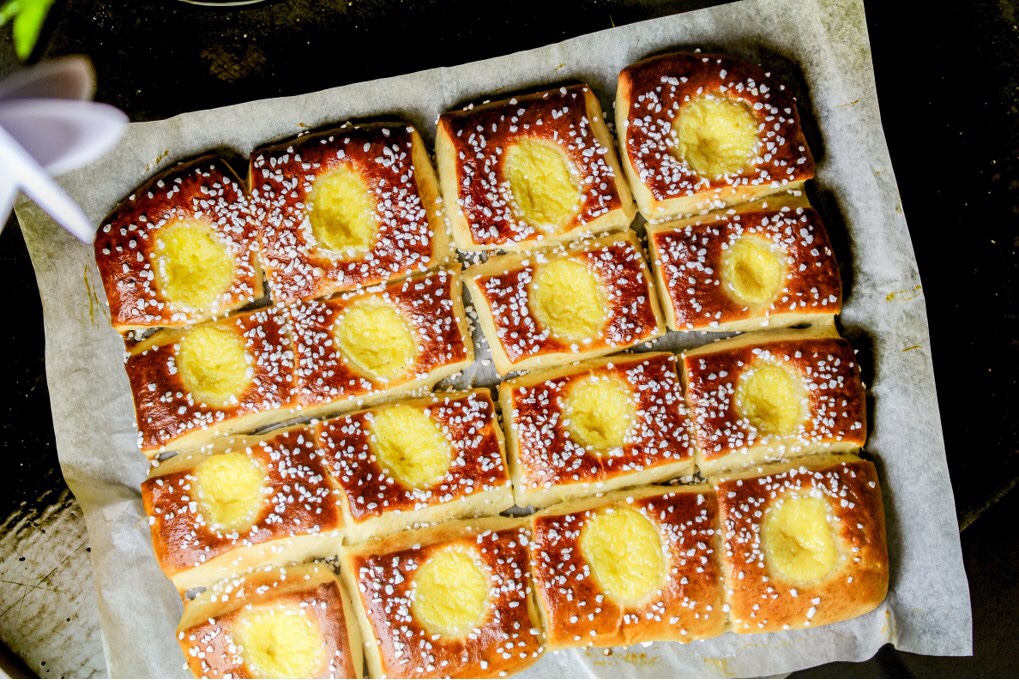 Igår bakade jag lite olika sorters bullar. Ville prova lite nytt och det passade ju perfekt till påsken som stormar emot oss. De här vaniljbullarna blev fantastiskt goda, nästan lite för goda som Tony sa. Inte perfekta, jag är ju mycket för att det ska se fint ut också. Men vet du, jag struntar fullkomligt i det den här gången, huvudsaken att de blev goda! 😅