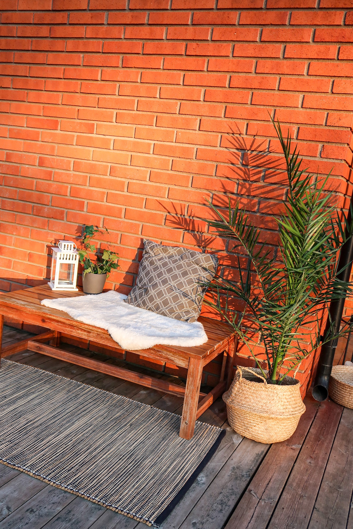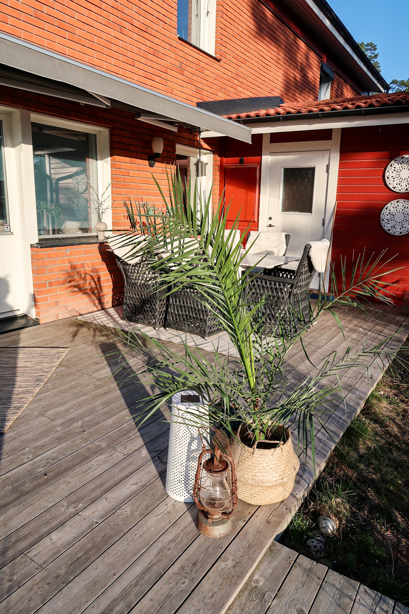 Här är ett till sånt ställe. Istället för en kal och stor altan utan någonting kan man göra en skön liten plats med mys. Vi utnyttjar alla såna här platser till max när dom finns.